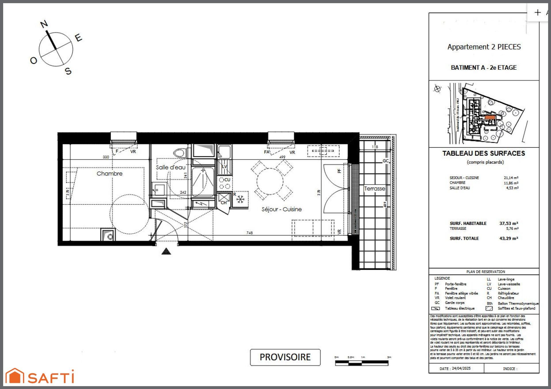 À 15 mn à pied des remparts dans une future résidence moderne et sécurisée, un appartement T2 de 37,53 m² au 2ème et dernier étage avec ASCENSEUR comprenant : une pièce de vie de 21 m² avec coin cuisine, le tout s'ouvrant sur un BALCON exposé SUD-EST, une chambre de 12 m², une salle d'eau avec wc. Deux emplacements de stationnement complètent ce bien. Local à vélos commun. Disponibilité prévisionnelle 2T2027. Faibles charges estimées à 800 ¤ / an. Plans, informations et rendez-vous sur demande. Photos de synthèse non contractuelles, illustrations d'ambiance. Les plus : frais de notaire réduits, résidence aux normes RE 2020 BBC, bon investissement locatif. Le bien comprend 3 lots, et il est situé dans une copropriété de 89 lots (les charges courantes annuelles moyennes de copropriété sont de 800 ¤ et le syndicat des copropriétaires ne fait pas l'objet d'une procédure citée à l'article L. 721-1 du code de la construction et de l'habitation).Les informations sur les risques auxquels ce bien est exposé sont disponibles sur le site Géorisques : www.georisques.gouv.frPrix de vente : 228 000 ¤Honoraires charge vendeurContactez votre conseiller SAFTI : Christine HAMON, Tél. : 06 89 18 49 27, E-mail : christine.hamon@safti.fr - EI - Agent commercial immatriculé au RSAC de SAINT-NAZAIRE sous le numéro 822 734 802.Informations LOI ALUR : Soumis au régime de copropriété. Nombre de lots : 89. Quote part annuelle(moyenne) : 800 euros. Honoraires charge vendeur. (gedeon_26118_32073662)