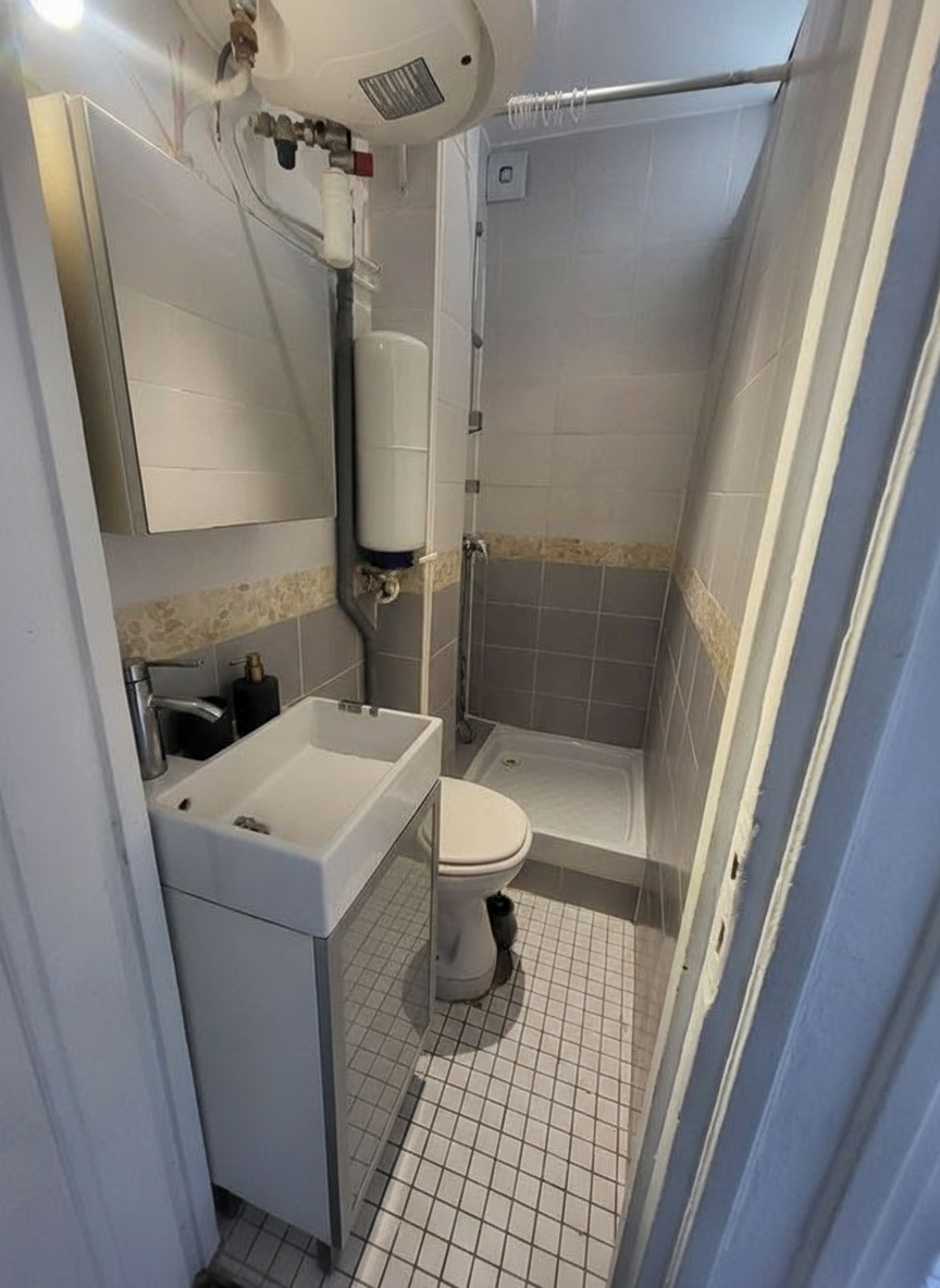 La salle d'eau, comprenant également des toilettes, est bien agencée et en parfait état. Elle offre tout le confort nécessaire pour votre hygiène personnelle.