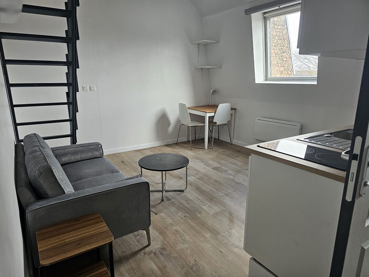 Appartement T1 bis meublé et fraichement rénové situé à Tourcoing. Ce charmant logement est idéal pour un étudiant ou un jeune actif recherchant un espace confortable et fonctionnel. Pièce principale : Lumineuse avec canapé, table, chaises et rangements. Cuisine : Équipée avec réfrigérateur, plaque de cuisson, micro-ondes, et ustensiles de cuisine. Salle de bain : Baignoire, lavabo et WC. Coin nuit en mezzanine : Lit double Toutes les fenêtres sont en PVC double vitrage. Chauffag