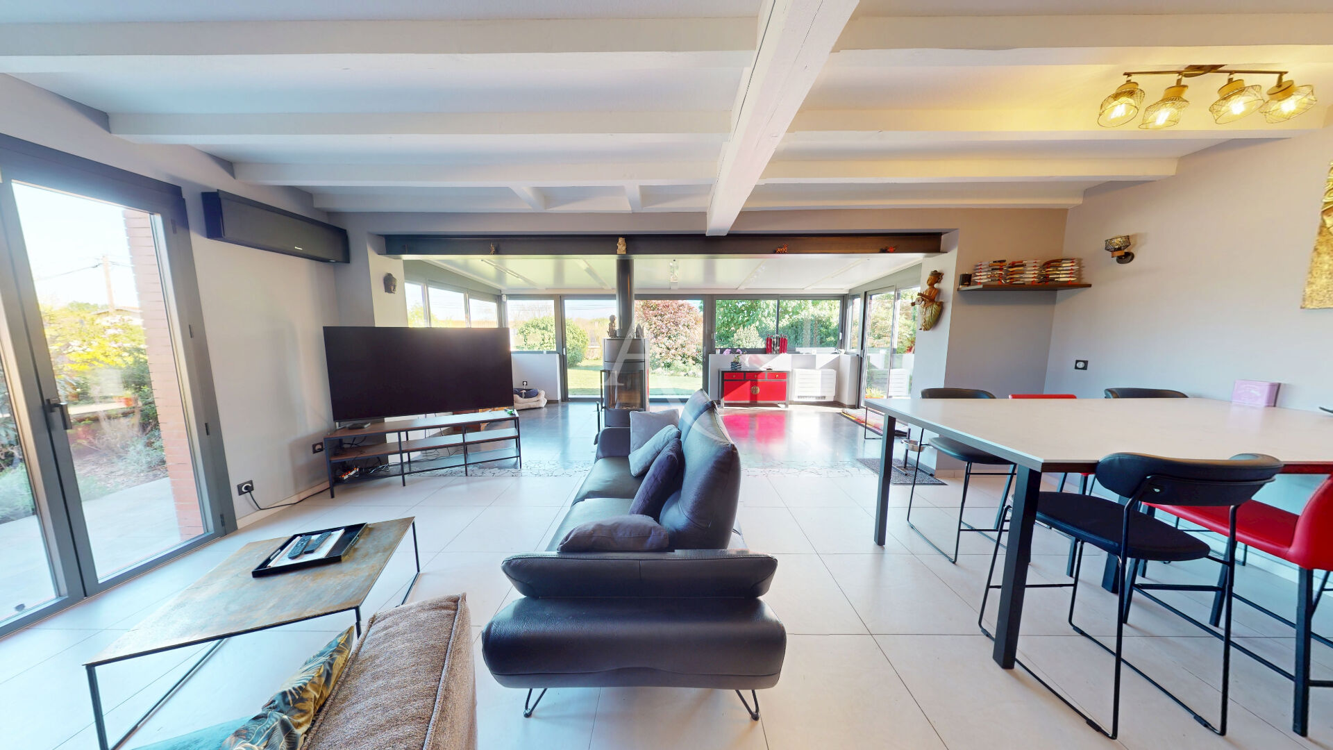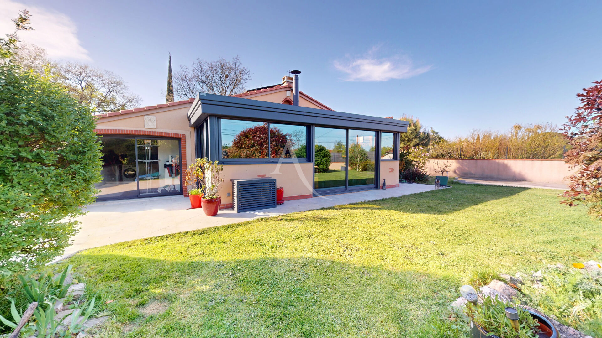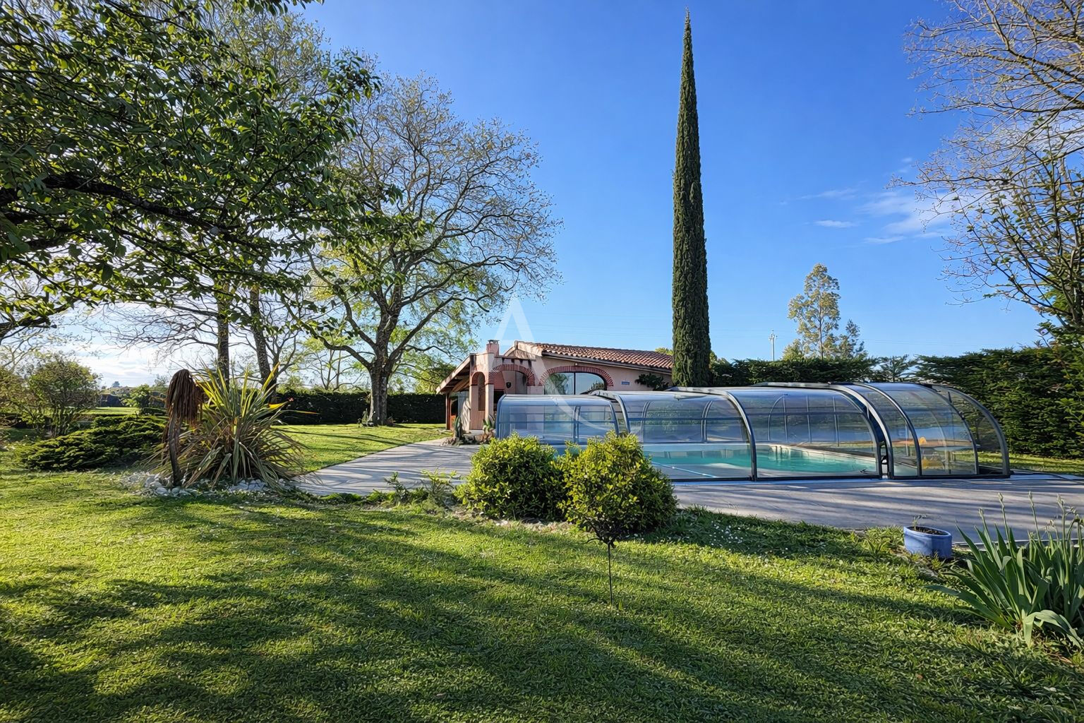 Sur la commune de Fontenilles, venez découvrir cette belle villa de plain pied entièrement rénovée + dépendance/appartement T2, sur une parcelle paysagée de 1985m² au calme en toute intimité. Un véritable havre de paix ! La maison principale entièrement climatisée vous offre un hall d'entrée, une spacieuse pièce de vie de plus de 67m² avec cuisine moderne entièrement équipée et aménagée avec un bel ilot central, 3 chambres avec placard, une salle de bain (double vasque, baignoire et douche), un espace bureau ou buanderie, et un wc séparé. A l'extérieur : Un appentis de plus de 35m² pour protéger vos véhicules, équipée d'une recharge pour votre véhicule électrique, et nombreuses places de stationnement, un espace détente à été aménagé autour de la piscine au sel avec terrasses entièrement dallées, jardin paysagé, barbecue, promettant de beaux moments en famille. De plus, une dépendance/appartement de type 2 avec pièce à vivre, kitchenette, une chambre, et une salle d'eau avec WC pour recevoir votre famille, vos convives ou pour louer. Les plus : La maison est en parfait état il n'y a aucun travaux à prévoir! prestations de qualités , alarme, volet alu, volets électriques; climatisation dans toute la maison, poêle à bois, et cadre de vie verdoyant et calme; Un vrai paradis pour vous et votre famille !