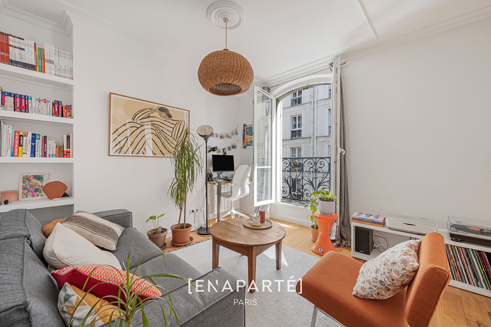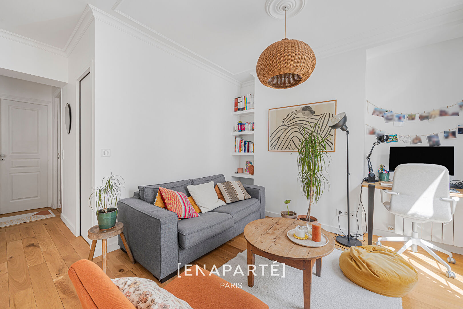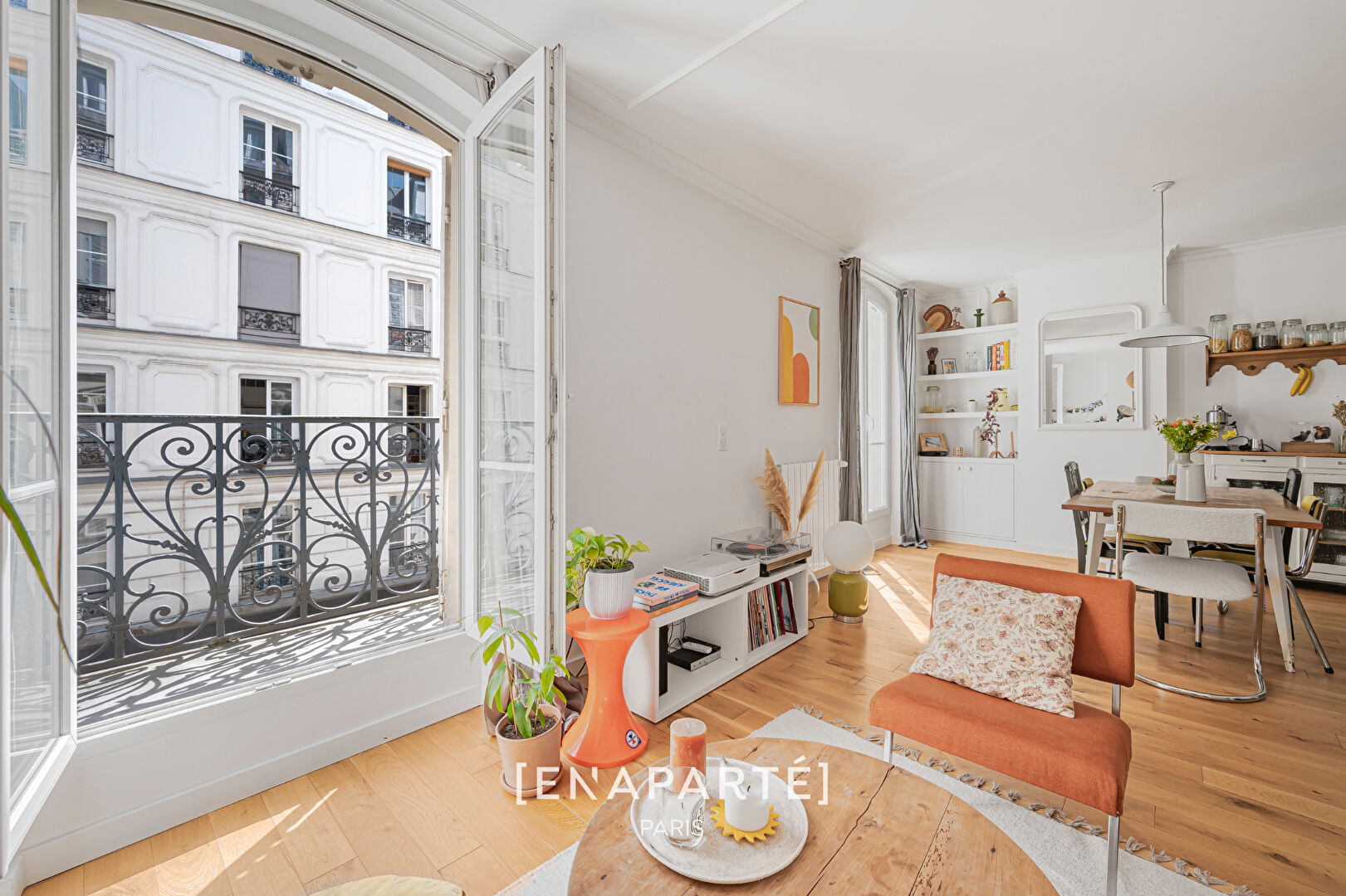 Paris 11e. Rue Sedaine - Boulevard Voltaire. Situé au 2? étage (seul appartement à l'étage) sans ascenseur d'un bel immeuble en pierre de taille parfaitement entretenu. Ayant fait l'objet de travaux et offrant de belles prestations, ce charmant 2/3 pièces est en parfait état. Il se compose d'une entrée, d'un séjour / salle à manger de 26 m² avec bibliothèques sur mesure donnant accès à un balcon filant, d'une cuisine ouverte entièrement aménagée et équipée, d'une chambre au calme sur cour avec placards, d'un dressing, ainsi que d'une salle de bains avec baignoire et de toilettes indépendantes. Sa configuration traversante Sud-Ouest / Nord-Est lui confère une belle luminosité tout au long de la journée. Une grande cave voûtée avec porte blindée complète ce bien.