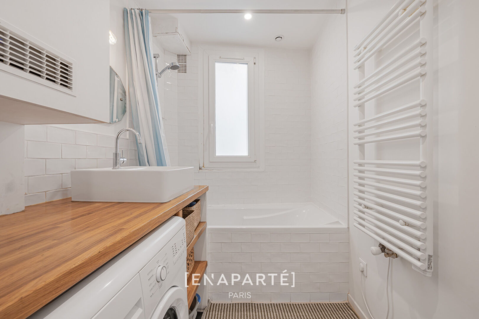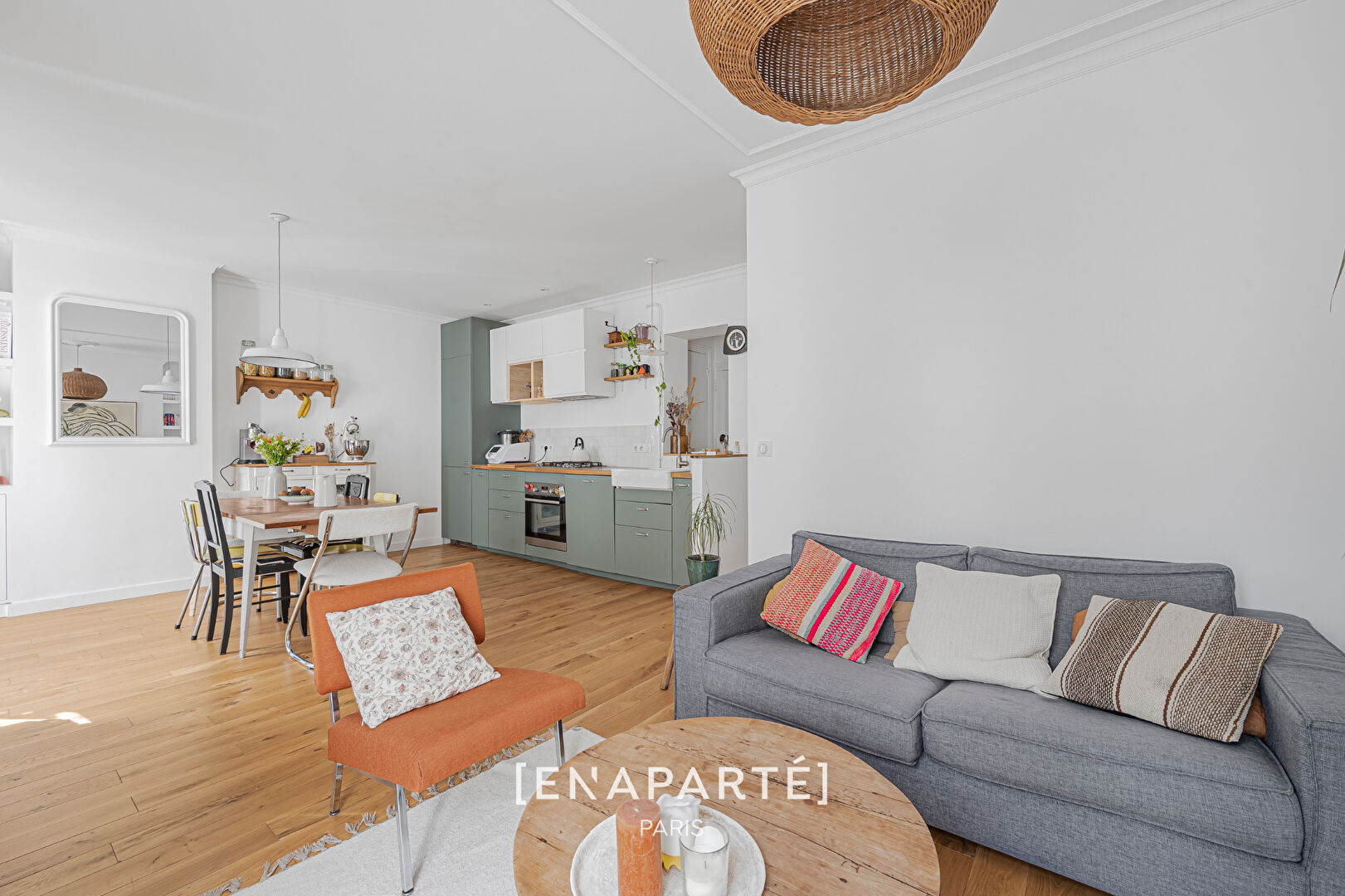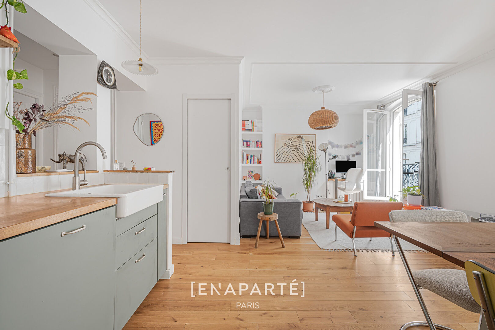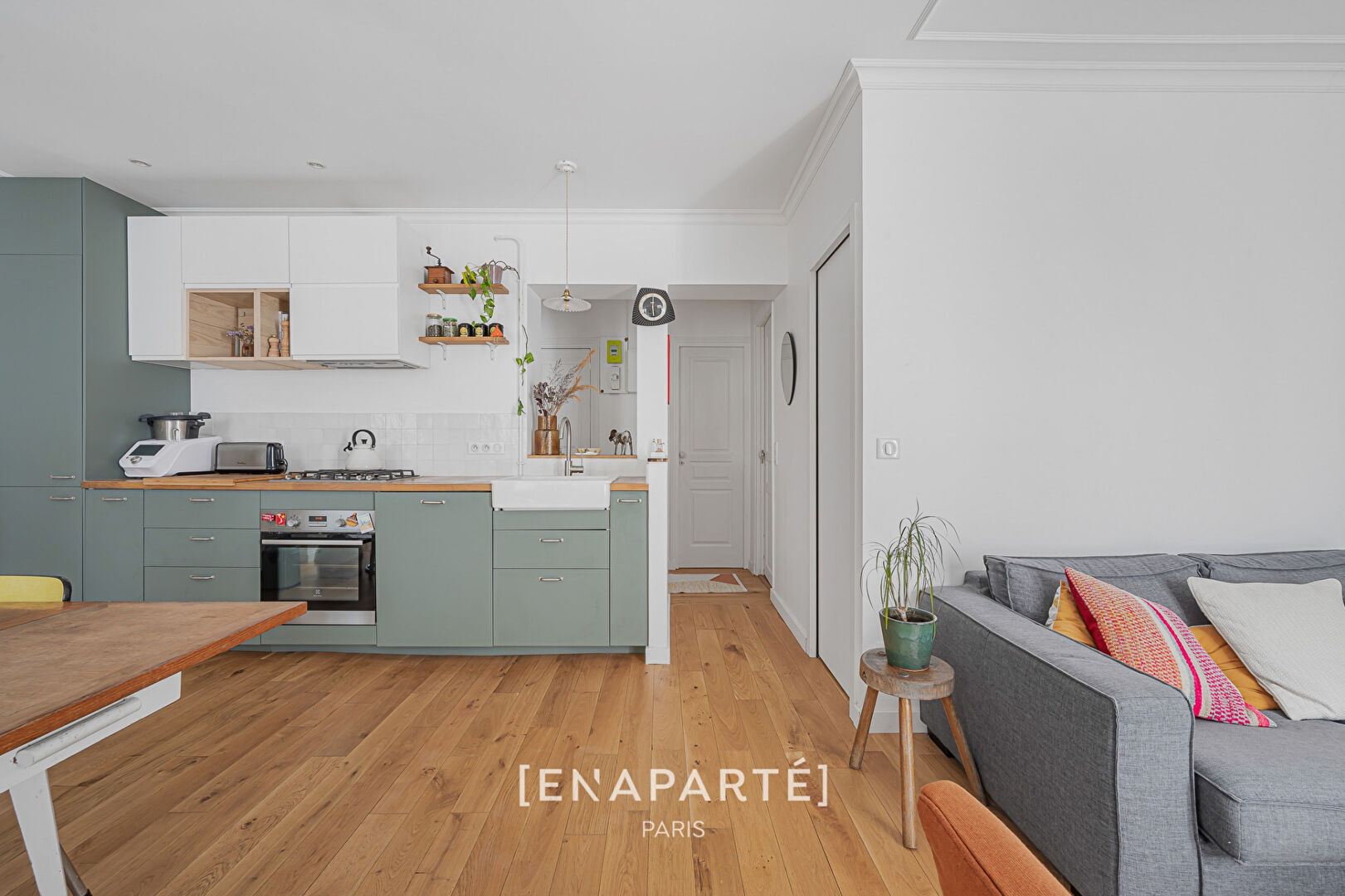 Paris 11e. Rue Sedaine - Boulevard Voltaire. Situé au 2? étage (seul appartement à l'étage) sans ascenseur d'un bel immeuble en pierre de taille parfaitement entretenu. Ayant fait l'objet de travaux et offrant de belles prestations, ce charmant 2/3 pièces est en parfait état. Il se compose d'une entrée, d'un séjour / salle à manger de 26 m² avec bibliothèques sur mesure donnant accès à un balcon filant, d'une cuisine ouverte entièrement aménagée et équipée, d'une chambre au calme sur cour avec placards, d'un dressing, ainsi que d'une salle de bains avec baignoire et de toilettes indépendantes. Sa configuration traversante Sud-Ouest / Nord-Est lui confère une belle luminosité tout au long de la journée. Une grande cave voûtée avec porte blindée complète ce bien.