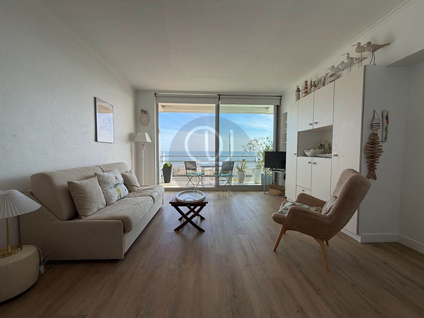 A proximité de l'avenue De Gaulle, très beau studio face mer, en parfait état, comprenant une pièce de vie lumineuse donnant sur terrasse, cuisine équipée, salle d'eau et wc séparés. Deux casiers de rangement. Local vélos. Prix: 337.000 euros (5.31 % honoraires TTC à la charge de l'acquéreur.) Copropriété de 62 lots - dont 46 lots habitation. Charges annuelles : 940 euros.