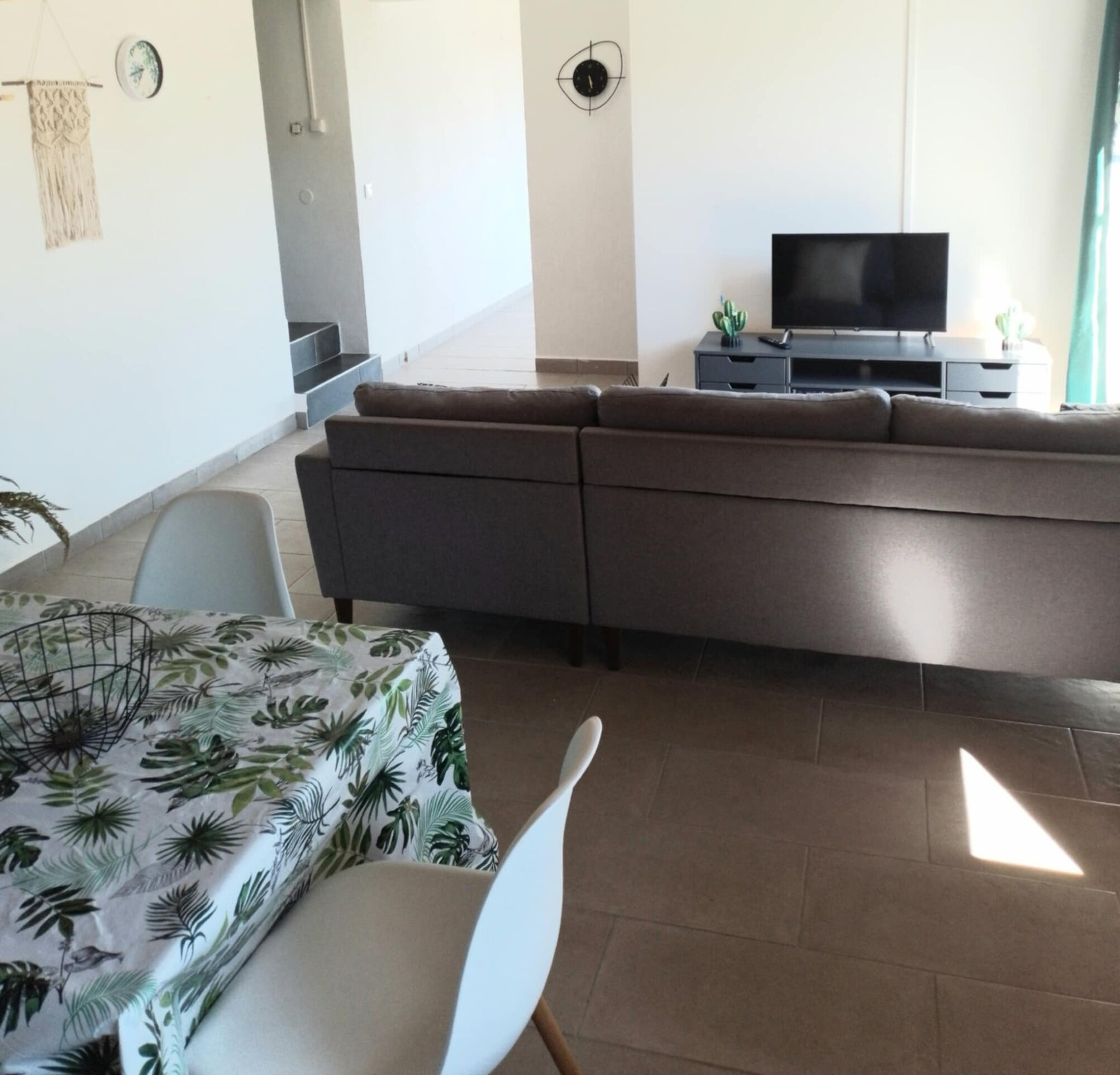 d'un séjour avec cuisine ouverte sur l'espace salle à manger,