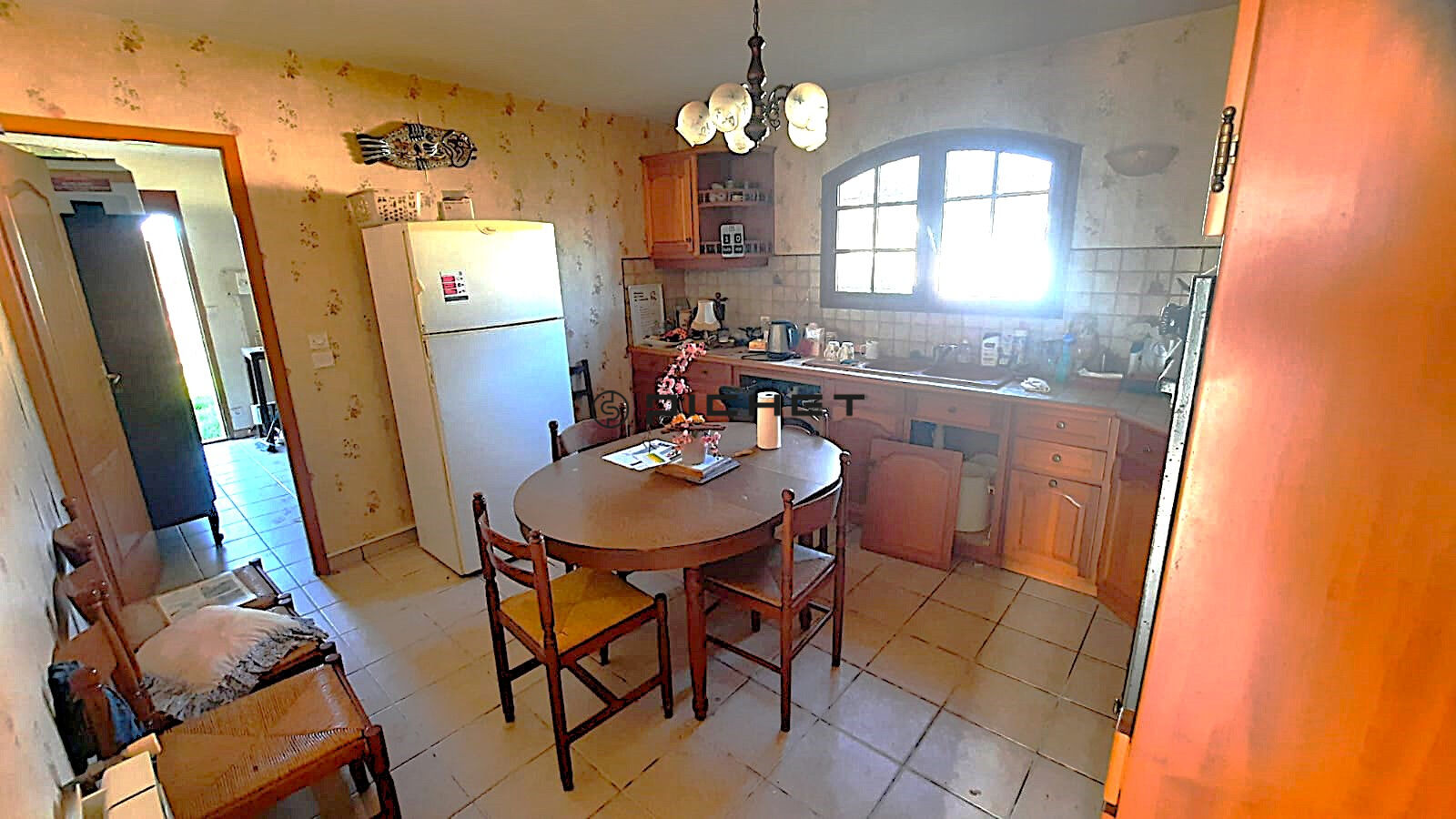 Cette propriété est située sur un terrain plat et clôturé de 2 850 m². La maison est entièrement de plain-pied. A l'arrière, une dépendance comprend trois garages. L'habitation dispose d'un vaste salon-salle à manger ouvrant sur une terrasse, d'une cuisine séparée avec buanderie, de trois chambres (dont deux avec accès direct à la terrasse), ainsi que de deux salles d'eau avec WC. Une très belle maison dans un cadre privilégié.