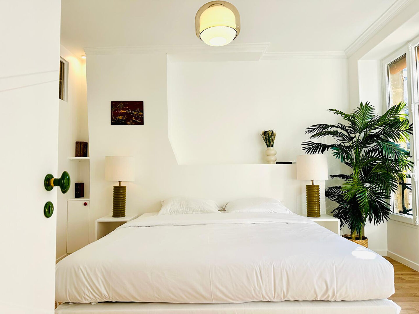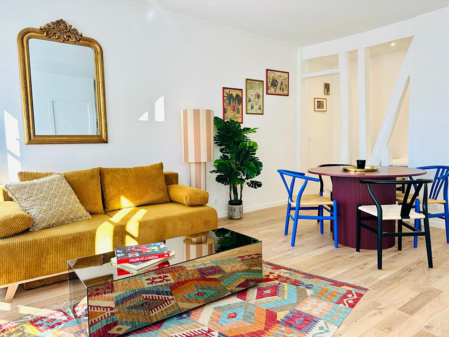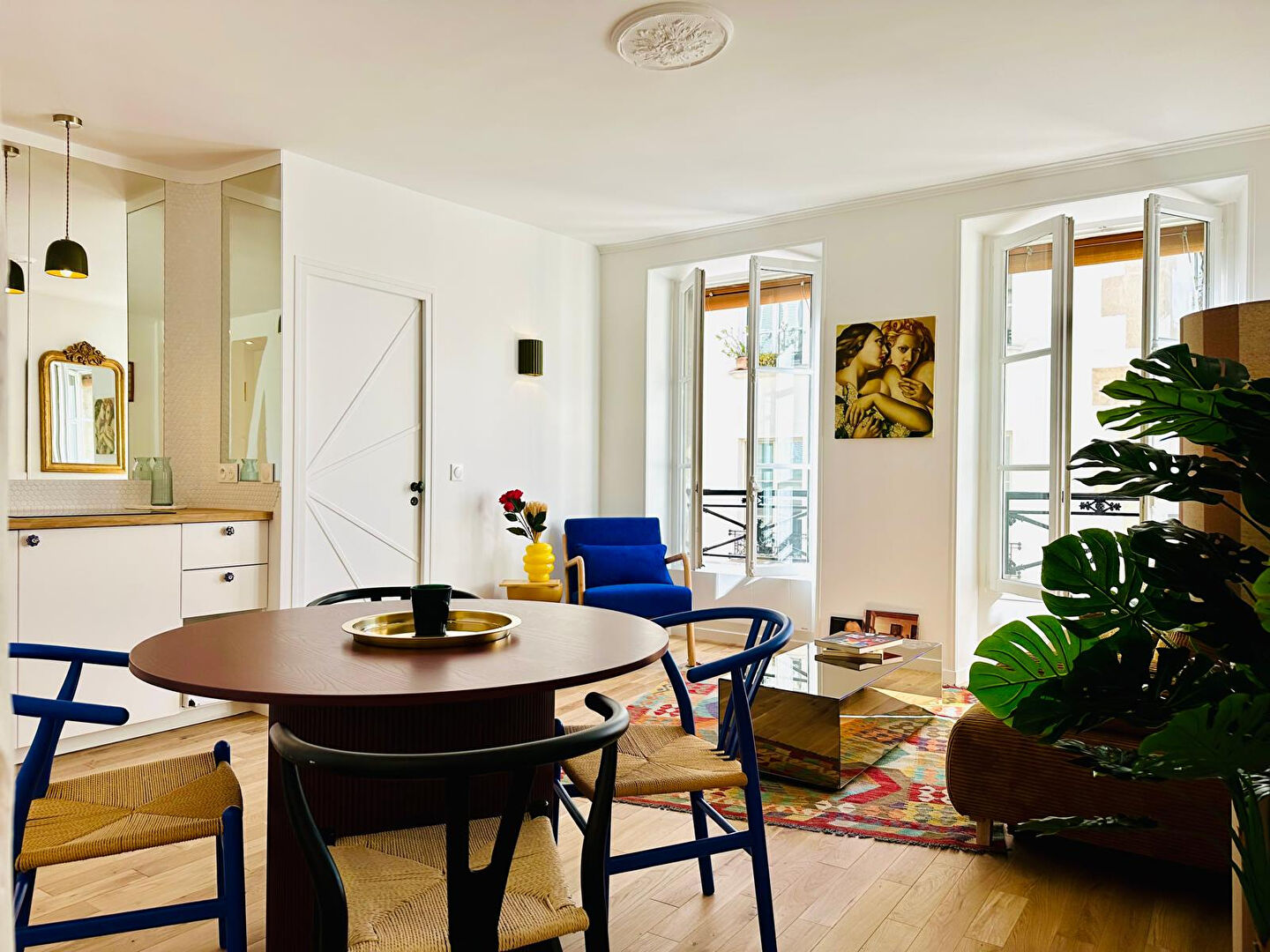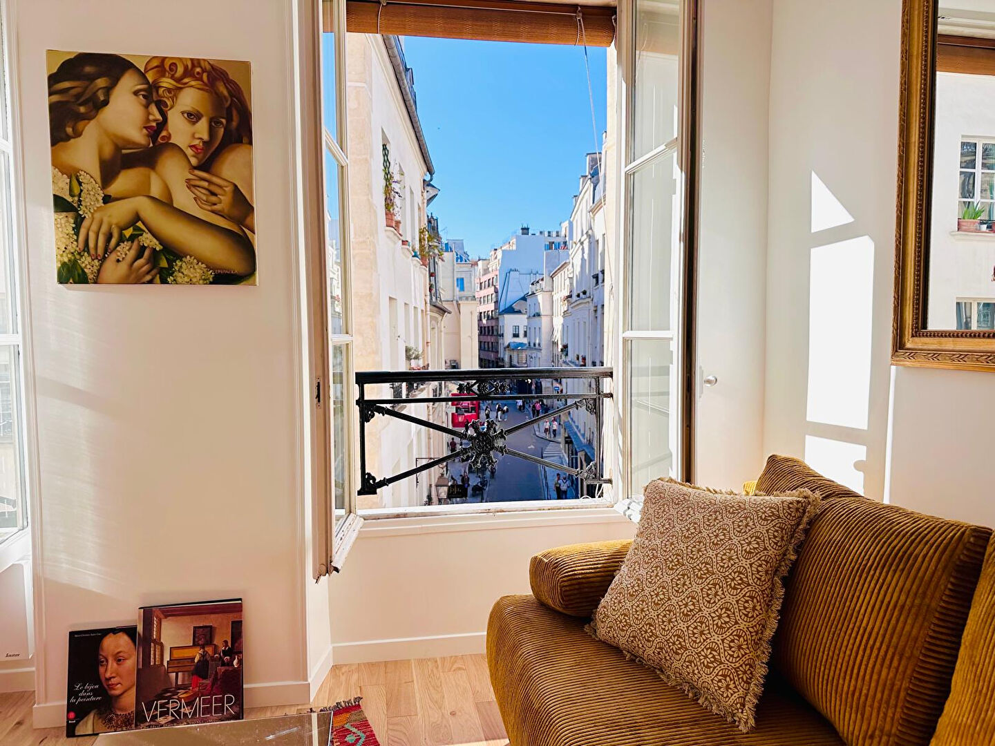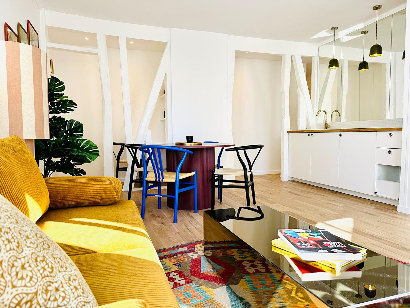 Au coeur du Marais historique, à une adresse emblématique - rue Vieille du Temple - découvrez ce très bel appartement de type 2 pièces, entièrement rénové avec goût par un décorateur, situé au troisième étage d'un immeuble de caractère. D'une grande élégance, ce bien allie charme de l'ancien et confort moderne. Il se compose d'une entrée avec placard, d'un séjour lumineux orienté plein ouest avec une vue dégagée sur la ravissante rue Sainte-Croix-de-la-Bretonnerie, d'une cuisine ouverte aménagée et équipée, ainsi que d'un espace bureau. La partie nuit dispose d'une vaste chambre avec penderie et bibliothèque sur mesure. La salle de douche contemporaine est spacieuse et les WC sont séparés. L'ensemble séduit par son cachet, ses volumes optimisés et la qualité de sa rénovation. Vous apprécierez son emplacement exceptionnel, en plein coeur du Marais, quartier mythique de Paris, réputé pour son patrimoine architectural, ses ruelles animées, ses galeries d'art et ses adresses confidentielles. A proximité immédiate des commerces, restaurants, cafés, boutiques de créateurs et marchés de quartier, il offre un cadre de vie unique et recherché. Côté transports, l'appartement bénéficie d'une excellente desserte avec plusieurs lignes de métro et de bus accessibles à pied, facilitant tous vos déplacements dans la capitale. Un bien rare, idéal en résidence principale, pied-à-terre ou investissement de qualité. (2.56 % honoraires TTC à la charge de l'acquéreur.) Copropriété de 46 lots - dont 24 lots habitation. Charges annuelles : 2493.12 euros.