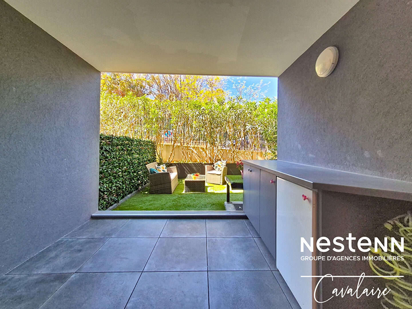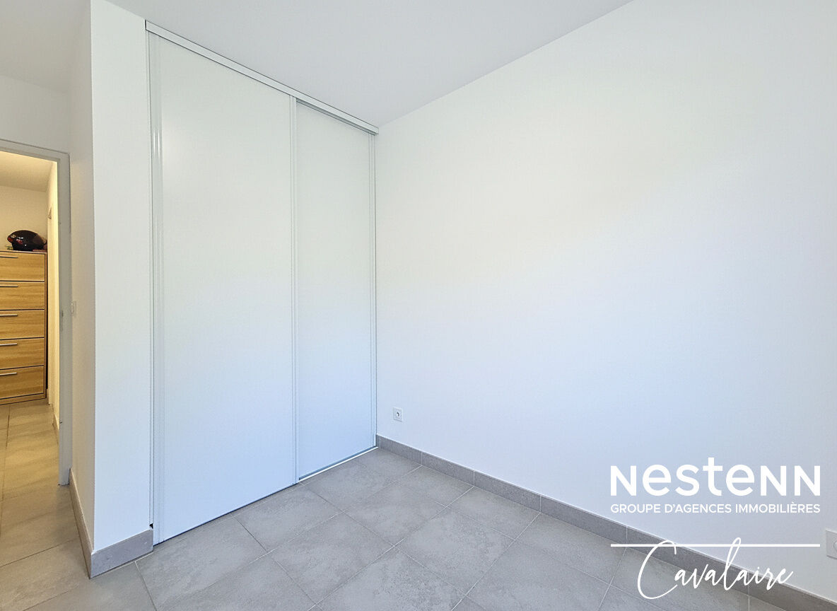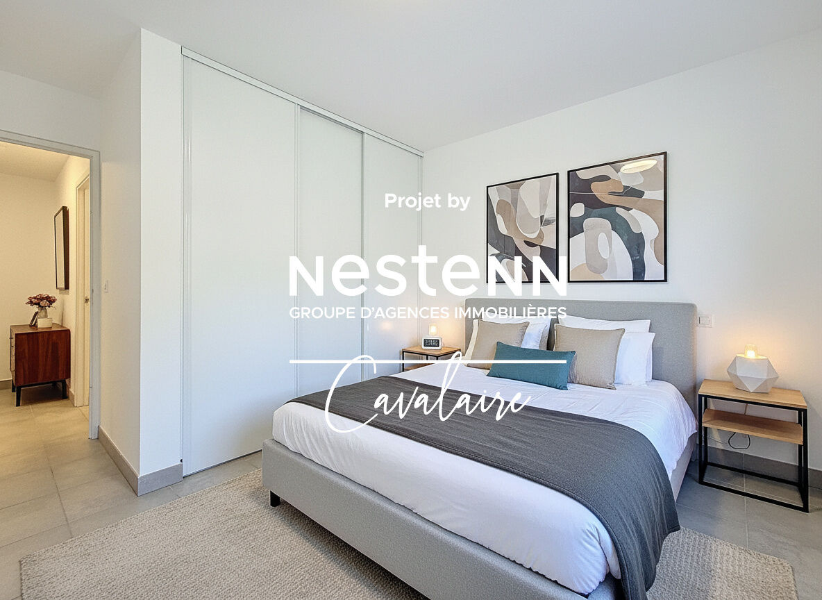 EXCLUSIVITE L'agence Nestenn Cavalaire est heureuse de vous présenter cet appartement entièrement climatisé en rez-de-jardin, d'environ 60 m² à proximité des plages, du centre-ville et du port, dans un environnement calme. Il est composé d'une entrée avec placards, d'une salle de douche, d'un WC indépendant, de 2 chambres avec placards, d'un séjour avec cuisine américaine aménagée et équipée donnant sur une loggia d'environ 8 m², dont l'autorisation de fermer a été donnée par le syndic, permettant ainsi de récupérer 8 m² habitables de plus, et d'un jardin. En sous sol, un garage double d'environ 26 m² et la possibilité de se garer devant, offrant une place de stationnement supplémentaire. Dans la copropriété est également disponible un box sécurisé pour ranger vélos et motos. En parfait état, contactez nous dès à présent !