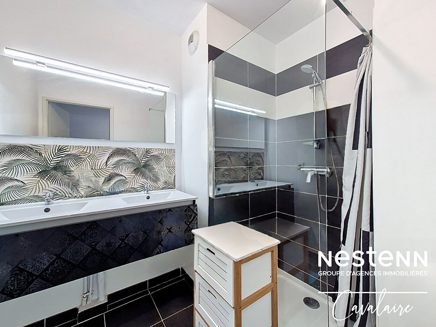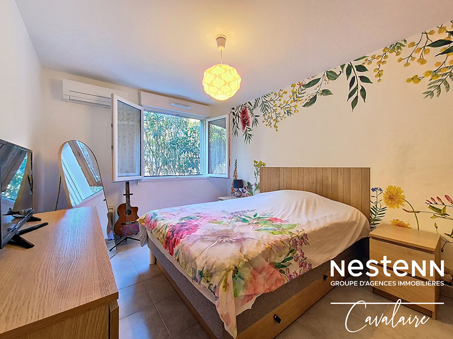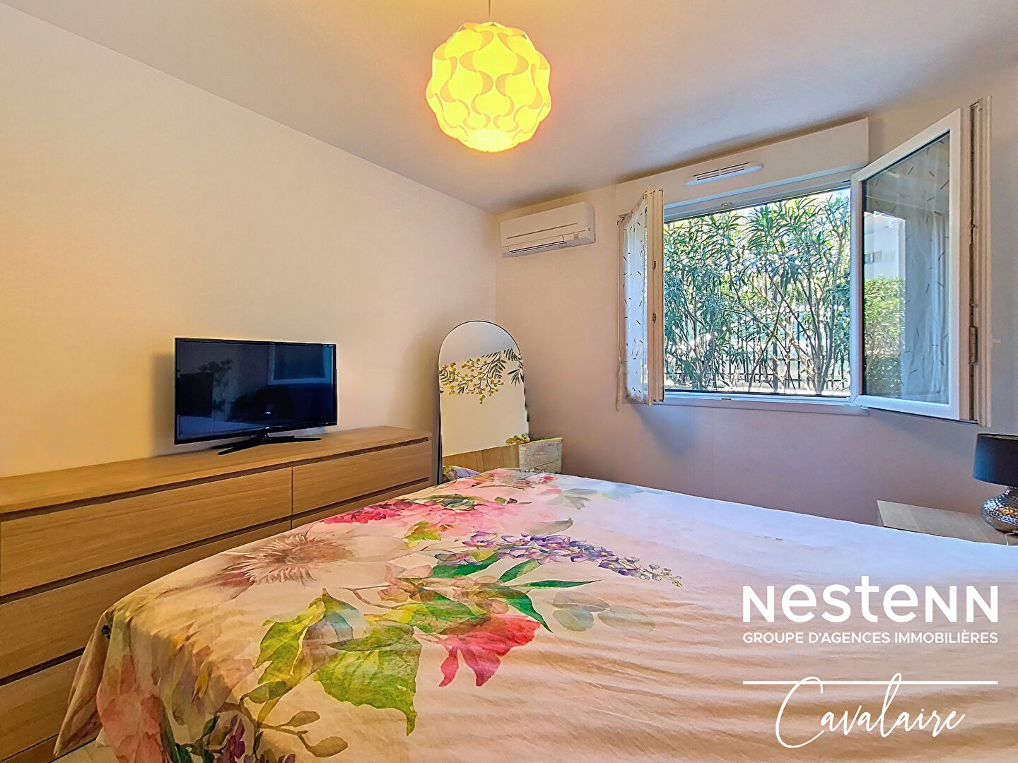 EXCLUSIVITE L'agence Nestenn Cavalaire est heureuse de vous présenter cet appartement entièrement climatisé en rez-de-jardin, d'environ 60 m² à proximité des plages, du centre-ville et du port, dans un environnement calme. Il est composé d'une entrée avec placards, d'une salle de douche, d'un WC indépendant, de 2 chambres avec placards, d'un séjour avec cuisine américaine aménagée et équipée donnant sur une loggia d'environ 8 m², dont l'autorisation de fermer a été donnée par le syndic, permettant ainsi de récupérer 8 m² habitables de plus, et d'un jardin. En sous sol, un garage double d'environ 26 m² et la possibilité de se garer devant, offrant une place de stationnement supplémentaire. Dans la copropriété est également disponible un box sécurisé pour ranger vélos et motos. En parfait état, contactez nous dès à présent !