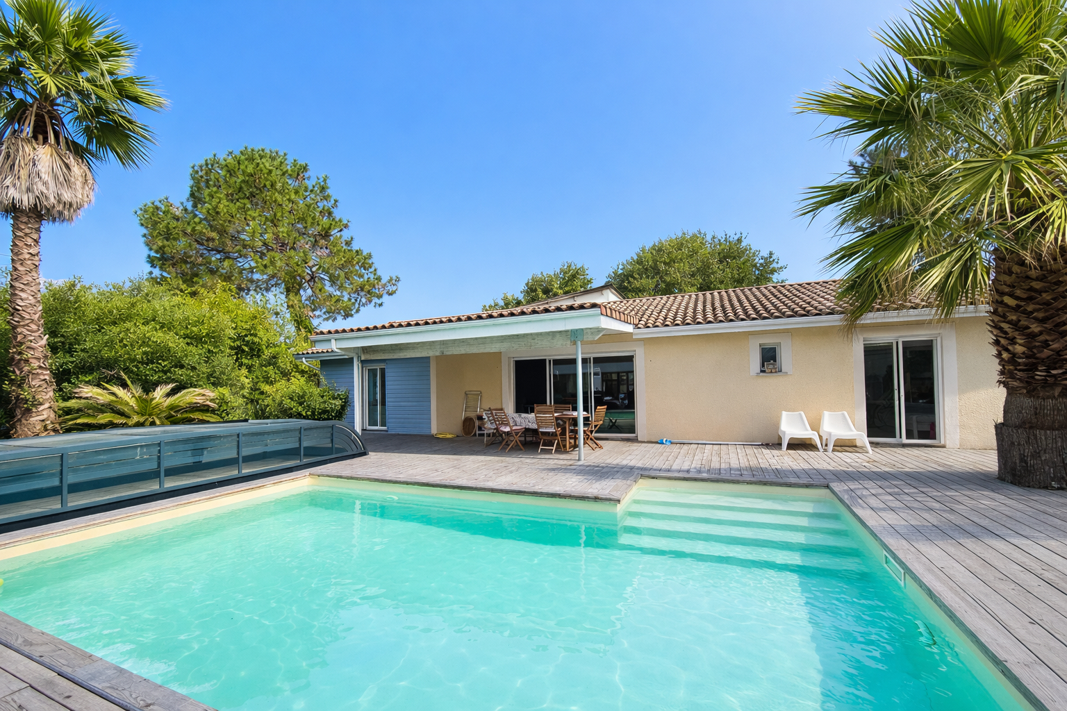 La Teste-de-Buch - Quartier Becquerel Marin Immobilier vous propose de découvrir cette belle maison de plain-pied, édifiée sur un terrain d'environ 1 050 m², construite dans les années 1990 et entièrement rénovée il y a 5 ans. Elle se compose d'un vaste espace de vie lumineux de 53 m² avec salon et cuisine ouverte donnant directement sur la terrasse et la piscine. Côté nuit, vous profiterez d'un bureau attenant à une suite parentale, tandis que l'autre aile de la maison dessert trois chambres, une salle de bains et un WC indépendant. En complément, une dépendance indépendante de la maison principale comprend une terrasse, deux pièces, ainsi qu'un garage double. Vous trouverez également plusieurs places de stationnement, un atelier de 15 m² et un agréable jardin d'hiver. Cette maison offre de belles prestations. Une visite ? Contactez-nous ! (2.83 % honoraires TTC à la charge de l'acquéreur.) Julie MARIN (EI) Agent Commercial - Numéro RSAC : 477626733 - Bordeaux.