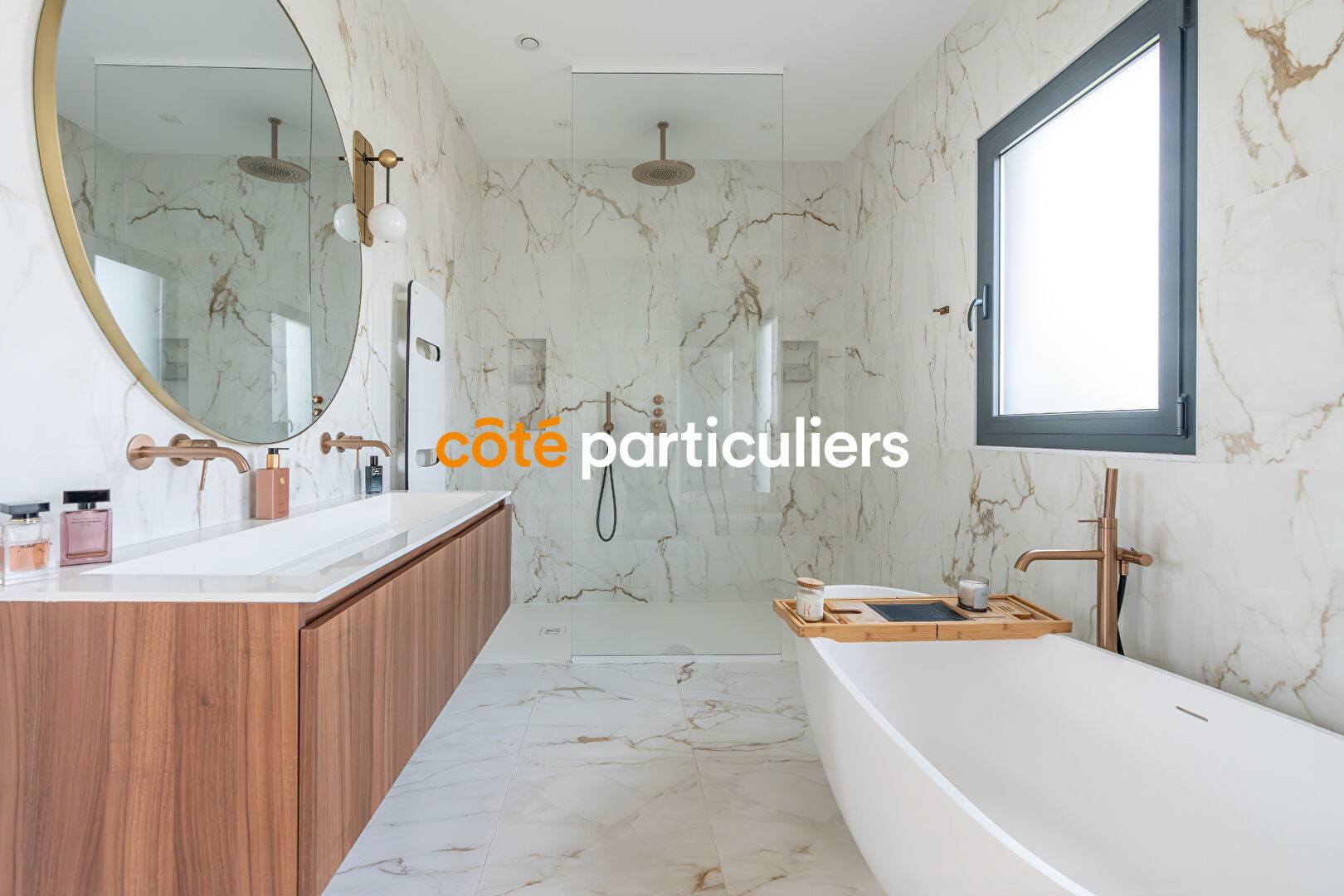 L' agence vous ouvre les portes d'une réalisation contemporaine rare au coeur du quartier recherché des Mûriers, à La Varenne Saint-Hilaire. Édifiée en 2021, cette maison d'architecte développe 235 m² habitables et s'articule sur 3 niveaux baignés de lumière. Dès l'entrée, les volumes s'ouvrent sur une vaste pièce de réception composée d'un salon spacieux, d'une salle à manger, orienté sud-ouest ,d'une cuisine haut de gamme entièrement équipée. L'ensemble est prolongé par une grande terrasse avec pergola bioclimatique et bénéficie d'un confort intégral grâce au chauffage au sol et à la climatisation réversible. L'espace nuit distribue au premier étage quatre chambres, une salle de bain, une salle de douche, des toilettes et une buanderie. Le dernier niveau abrite une suite parentale avec salle de bain, dressing et accès direct à une large terrasse privative exposée sud/sud-ouest, ainsi qu'une chambre supplémentaire avec sa propre salle de douche. Bâtie sur un terrain de 550 m², la maison accueille également une dépendance, une piscine chauffée de 8 m par 3,50 m avec pompe à chaleur et de généreux espaces extérieurs paysagers. Le stationnement peut recevoir jusqu'à quatre véhicules et une entrée secondaire indépendante (2.58 % honoraires TTC à la charge de l'acquéreur.)