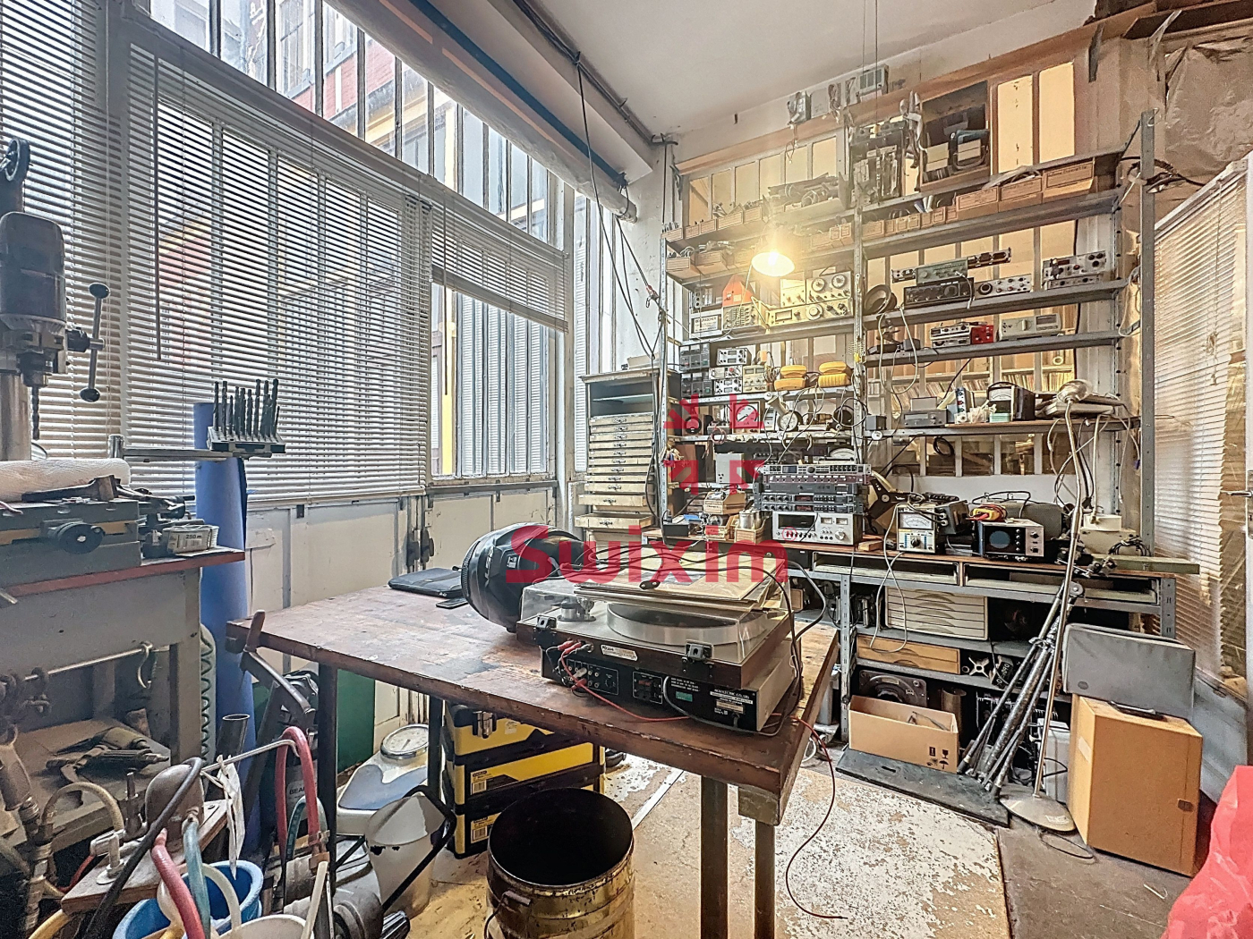 Le bien se compose d'un grand plateau largement ouvert, bénéficiant d'une hauteur sous plafond exceptionnelle : environ 3,50 m sur la majeure partie de l'espace, atteignant jusqu'à 5,40 m dans le fond de l'atelier sous verrières.