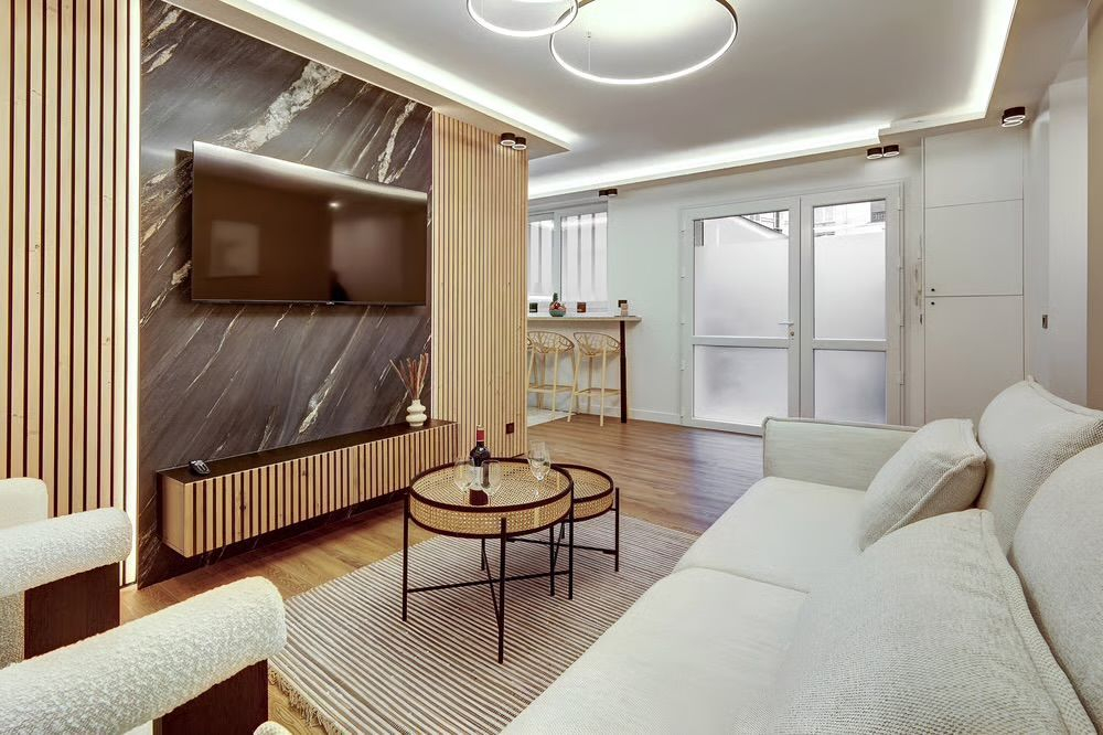 ? Bien d'exception entièrement rénové par architecte, situé en rez-de-chaussée sur cour, offrant un cadre calme, lumineux et moderne.