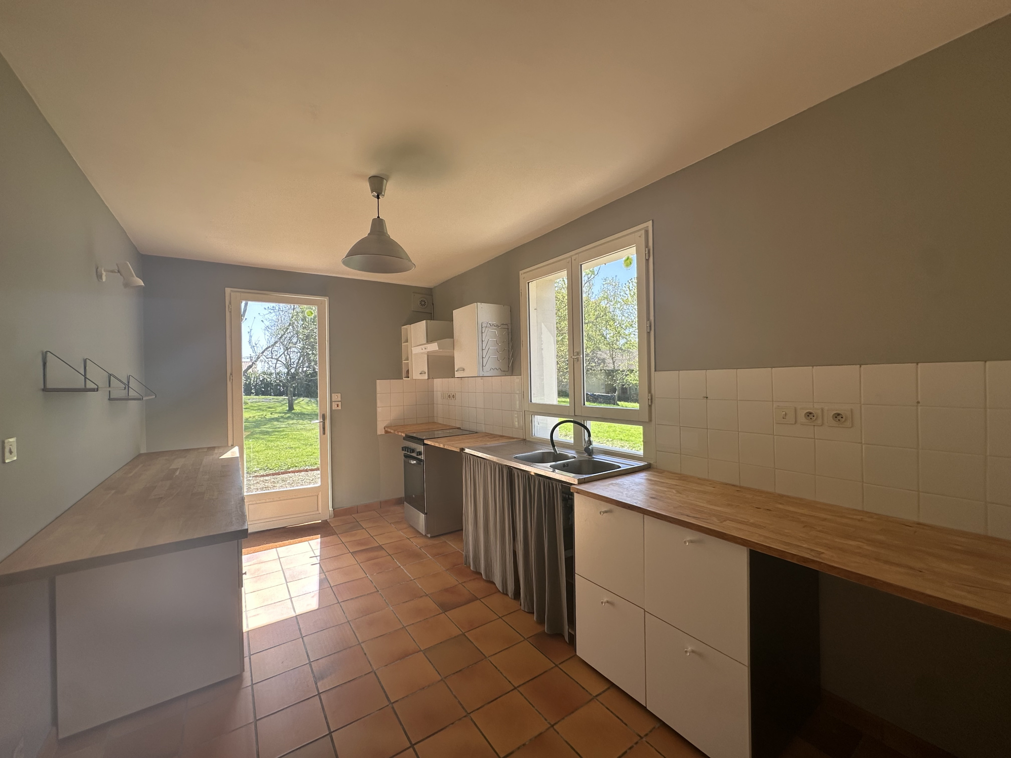 Le rez-de-chaussée donne accès à un grand séjour lumineux, sublimé par une cheminée qui apporte chaleur et convivialité. La cuisine séparée est équipée avec d'une hotte, d'une plaque de cuisson et d'un four. Ce niveau accueille également une chambre avec sa salle d'eau attenante, comprenant une douche, un sèche-serviette et une vasque, ainsi qu'un WC indépendant.