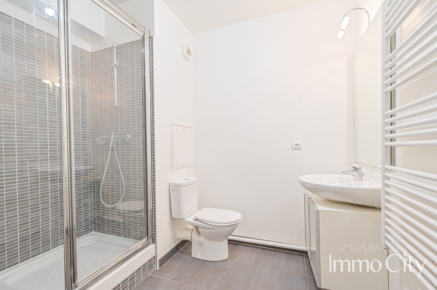 BEL IMMEUBLE RECENT DE STANDING SECURISE AVEC DEUX DIGICODES - AU REZ-DE-CHAUSSEE SUR RUE CALME - BONNE DISTRIBUTION : entrée, pièce à vivre avec coin cuisine, salle de douche avec wc