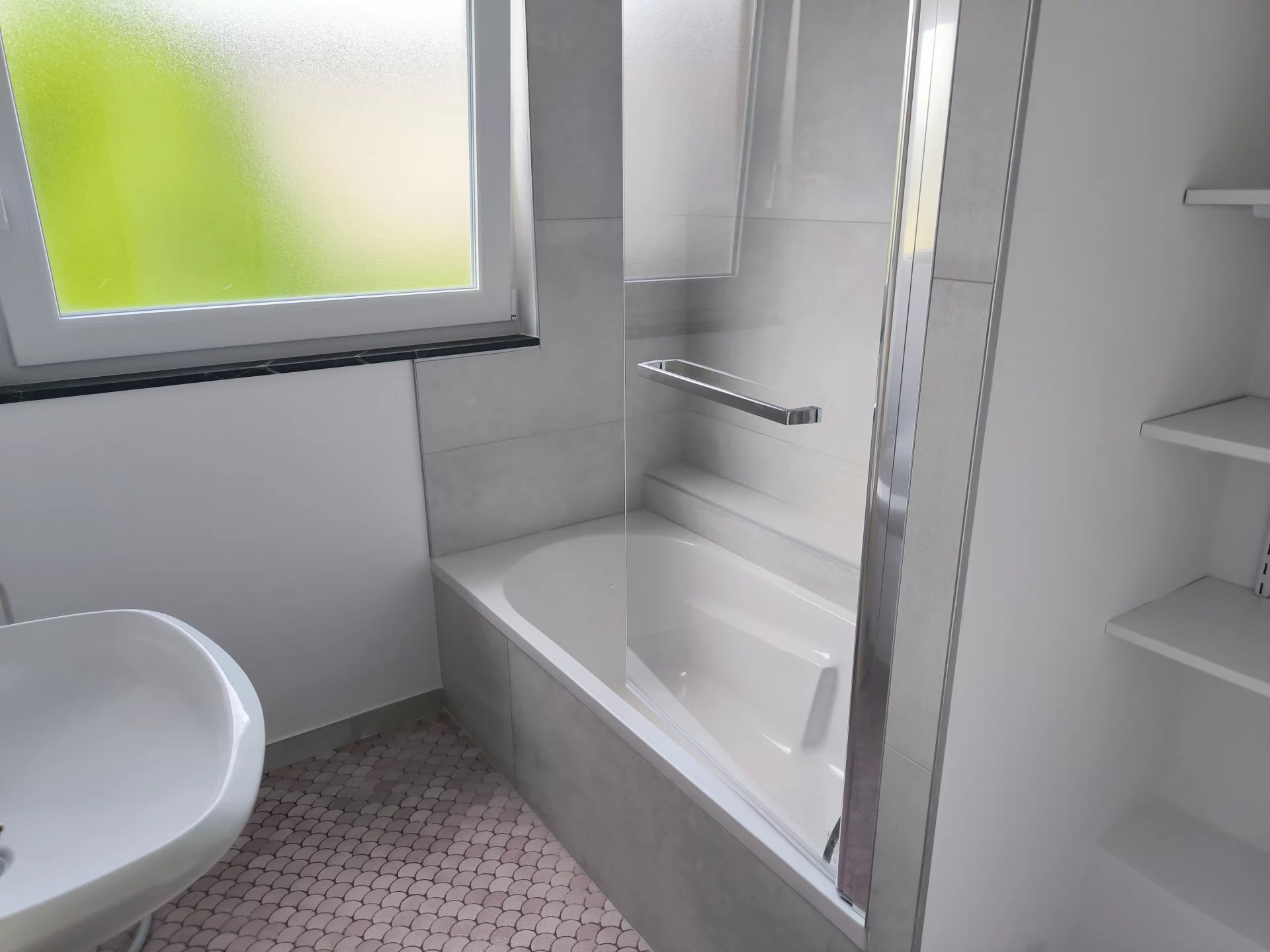 1 salle de bain neuve avec baignoire