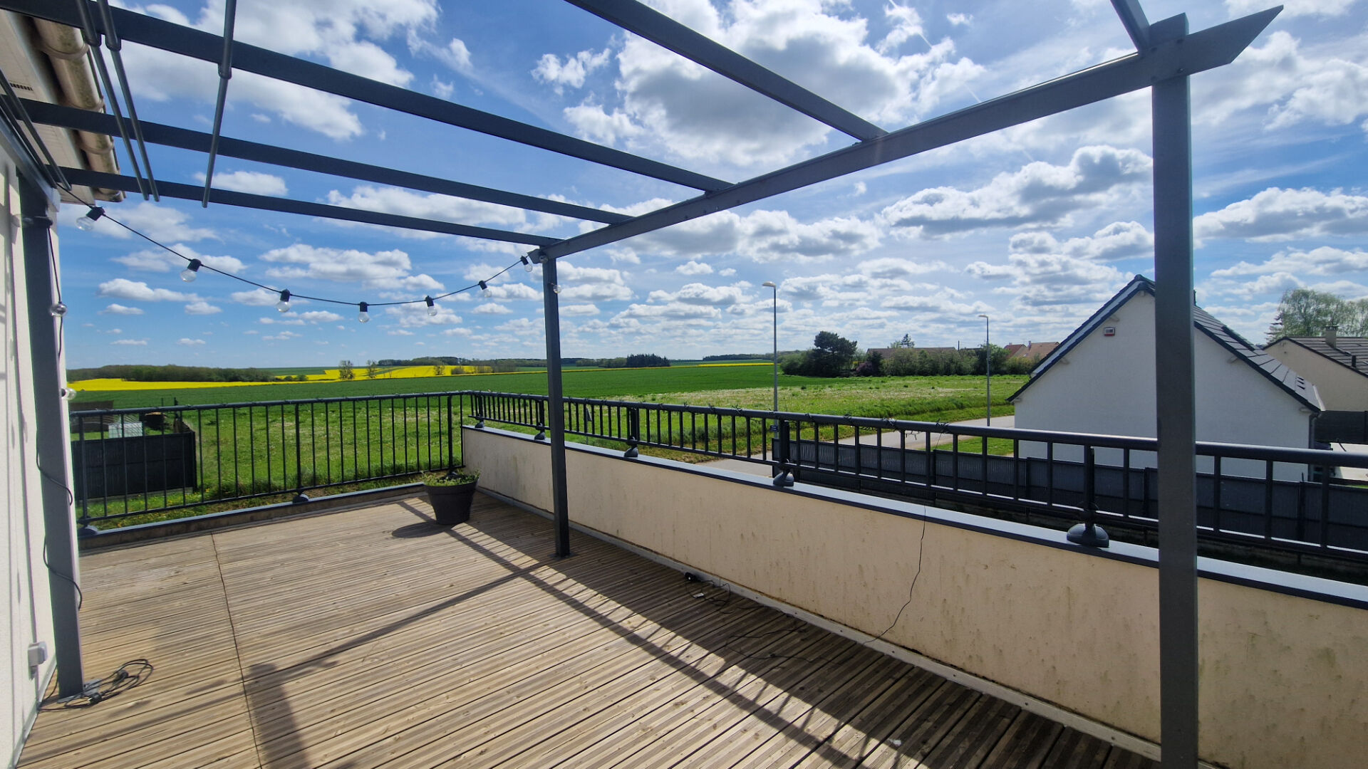 L'AGENCE LA CHAUMIERE vous présente : Dans un village avec écoles, entre Maintenon et Chartres, 5km de la gare pour Paris. Une Superbe maison de 2018. Au rez de Chaussée: Une entrée sur un salon salle à manger avec une cheminée insert, une cuisine aménagée et équipée , une buanderie, un wc, et une suite parentale (chambre, salle d'eau). A l'étage un beau palier, trois chambres, une salle de bains et un wc séparée. Deux terrasses et un garage. Un jardin clos de plus de 790 m². Cette maison a été conçu pour vous offrir un cadre de vie alliant confort, praticité et économie (maison à faible consommation) COUP DE COEUR Réf : M217952 (5.00 % honoraires TTC à la charge de l'acquéreur.)