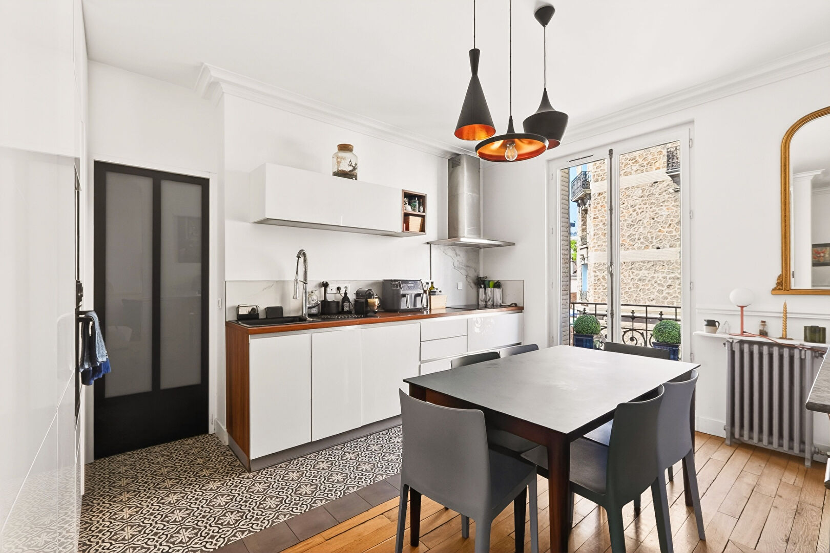 A 5min à pied de la gare de Clamart et du futur métro 15, au deuxième étage, appartement 3 pièces traversant clés en main entièrement refait par un architecte, comprenant : Un vaste séjour lumineux doublement exposé OUEST-EST donnant sur un balcon, une cuisine américaine aménagée et équipée, une grande chambre exposée EST sans aucun vis-à-vis, une deuxième pièce pouvant servir de chambre d'appoint ou de bureau également exposée EST, une salle de bain et des WC séparés. Aucun travaux à prévoir. Belle hauteur sous plafond, parquet en chêne massif, isolation intérieure. Une cave complète ce bien. Venez découvrir votre prochain coup de coeur, proche de toutes les commodités ! Copropriété de 39 lots - dont 21 lots habitation. Charges annuelles : 1275 euros. SACHA ABAJO (EI) Agent Commercial - Numéro RSAC : - .