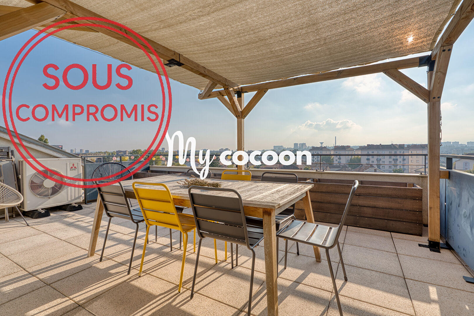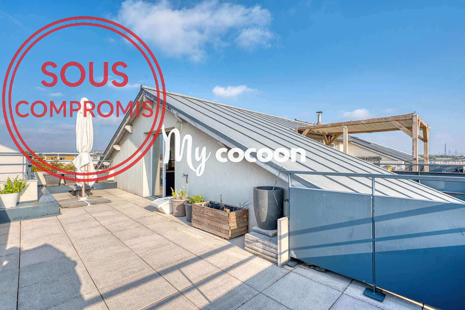 ******************** SOUS COMPROMIS ************************* RARE TOIT-TERRASSE | PARILLY / JULES GUESDE | T5 ; 3 CHAMBRES ; 121 m² | 2 TERRASSES | GARAGES DOUBLE | VUE PANORAMIQUE My Cocoon, l'agence aux honoraires fixes à 2% vous présente en exclusivité ce bien d'exception situé sur la commune de Vénissieux : Comme une maison sur le toit, ce duplex est situé au dernier étage d'une résidence récente (construction 2011) et bien entretenue. Ce bien de 91m2 (Loi Carrez), en excellent état, séduit par ses volumes (121m2 au sol), sa luminosité et sa vue dégagée. Un véritable "cocon suspendu". A l'extérieur, cet appartement possède 2 grandes terrasses de 25m2 environ chacune, offrant un cadre idéal pour les repas, moments de détente, jardinage ou soirées d'été... Le tout avec une vue dégagée sur la ville et les monts du Lyonnais. Sa pièce de vie généreuse (35m2) se compose d'un séjour et d'une cuisine moderne entièrement équipée. La partie nuit propose 3 chambres, dont une au premier niveau avec sa salle d'eau. Vous trouverez également un coin bureau/chambre, un dressing, une salle de bains, de nombreux rangements et 2 WC. Prestations et atouts : - Exposition : SUD / OUEST - Excellente luminosité et atmosphère chaleureuse - Vue dégagée depuis toutes les pièces - Agencement familiale et nombreux rangements - Possible de créer une suite parentale - Climatisation réversible - Pergola sur une terrasse - Double vitrage, bon DPE - Chauffage individuel électrique - Proximité avec le Parc Parilly, commerces et transports en commun - Métro D : 4 min à pied - Tramway T4 : 5min à pied - Gare Part Dieu : 23 min en métro - Présence d'un local à vélo Un garage double en sous-sol complète ce bien (en option). ---------- POUR UNE ESTIMATION: Sébastien THEODOSE 006 37 09 19 46 ---------- Prix : 335 000 euros Honoraires Agence inclus 2% Biens en copropriété : 28 Lots d'habitation Pas de procédure en cours Charges annuelles ALUR : 2 100 euros Taxe foncière 2024 : 1 667 euros DPE : D / GES : B. Contact : Sébastien THEODOSE : 00637091946 Agent commercial RSAC 832 812 267 MY COCOON : 16 rue Franklin, 69002 LYON. www.mycocoon-lyon.com Copropriété de 61 lots - dont 28 lots habitation. Charges annuelles : 2100 euros. Sébastien THEODOSE (EI) Agent Commercial - Numéro RSAC : 832812267 - Lyon.