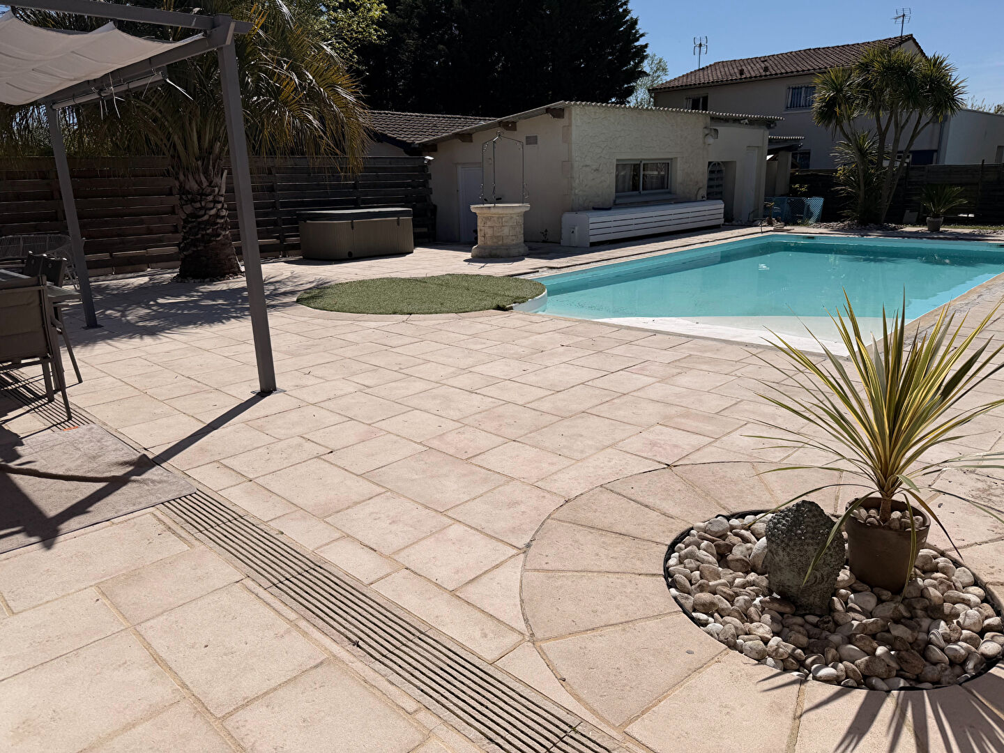 A proximité immédiate de Bordeaux, découvrez cette charmante maison aux espaces bien pensés et à l'atmosphère chaleureuse. Au rez-de-chaussée, vous serez séduit par une agréable pièce de vie comprenant une cuisine ouverte sur la salle à manger, une arrière cuisine, un salon convivial, une chambre, une salle d'eau, des wc indépendants ainsi qu'une véranda lumineuse, idéale pour profiter de chaque saison. A l'étage, un palier pouvant aisément faire office de bureau dessert une belle chambre et une salle d'eau avec wc, offrant un espace nuit confortable. A l'extérieur, laissez-vous charmer par une terrasse accueillante, une cour intime et une piscine neuve, et un jardin agréable parfait pour profiter pleinement des beaux jours. DPE: B 493 500 euros HAI (dont 5% d'honoraires à la charge de l'acquéreur) (5.00 % honoraires TTC à la charge de l'acquéreur.)