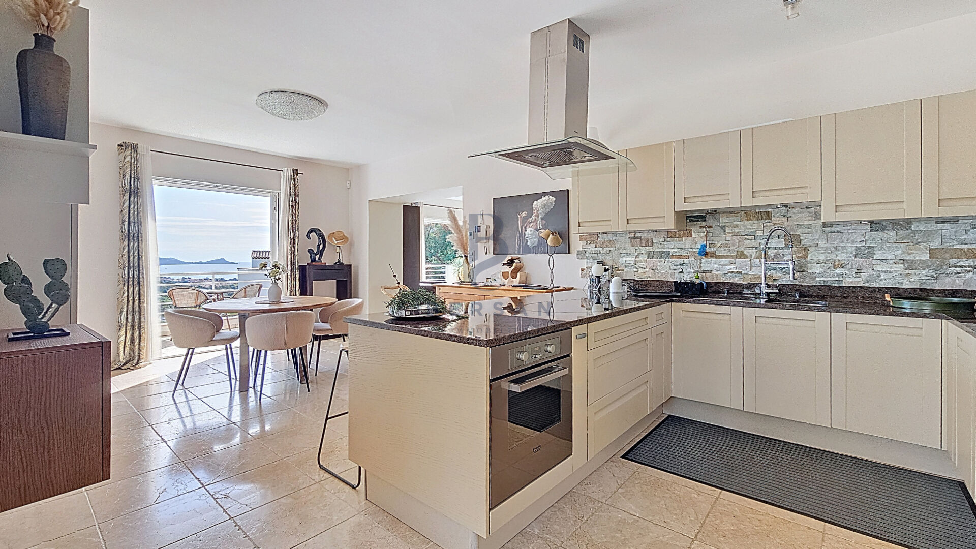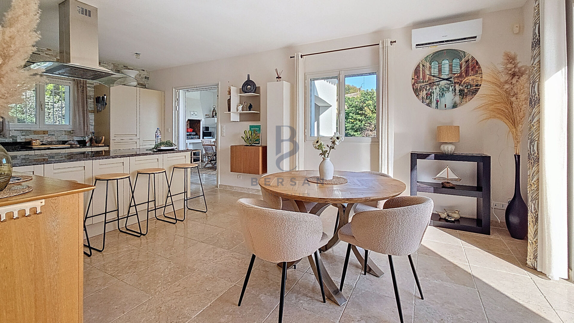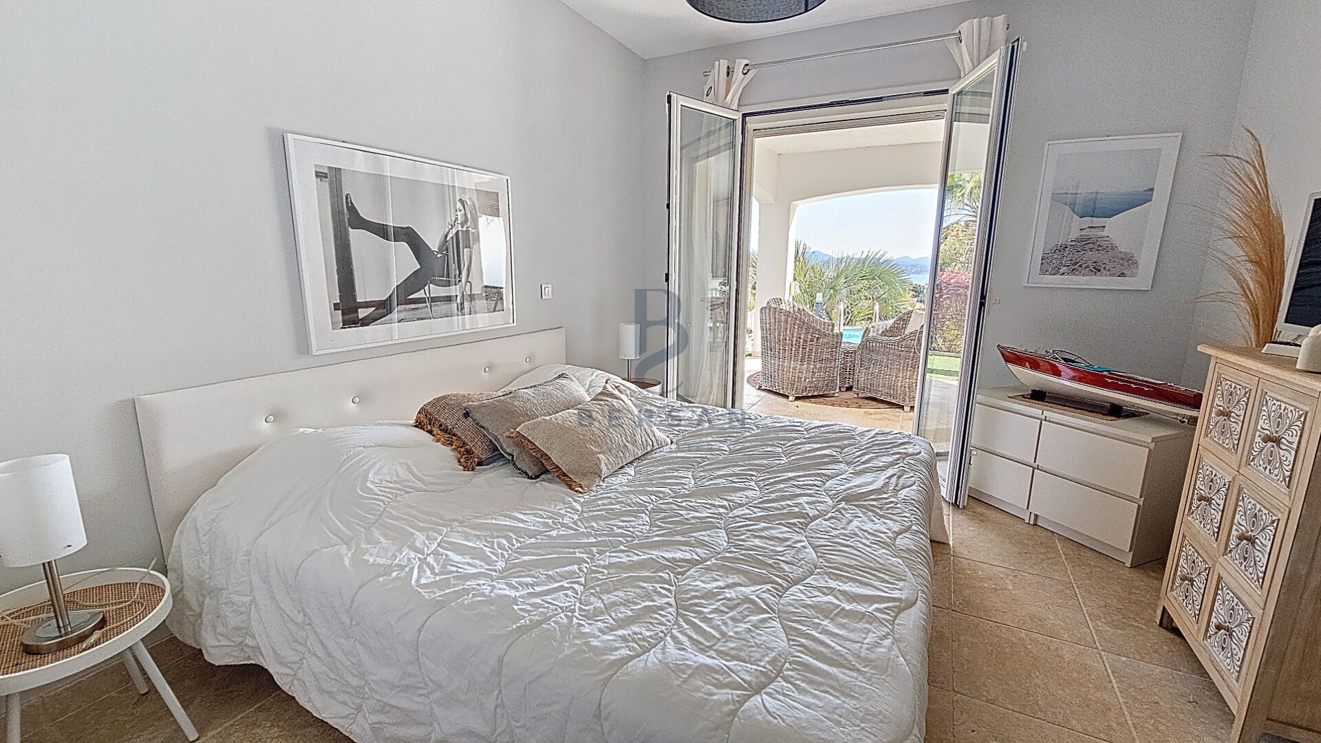 BERSAN Immobilier vous présente cette splendide villa idéalement située à Saint-Aygulf, en position dominante, offrant une vue mer dégagée et un environnement particulièrement calme, sans vis-à-vis. Dès le rez-de-chaussée, les pièces de vie profitent pleinement de la vue grâce à de larges baies à galandage. Le séjour et la salle à manger s'ouvrent sur les extérieurs avec une vue exceptionnelle sur toute la baie. La cuisine équipée ouverte, fonctionnelle, bénéficie également d'un accès à une terrasse couverte avec cette vue contemplative. Ce niveau accueille deux chambres, une salle de bains, une salle d'eau, un dressing, un WC de courtoisie ainsi qu'un garage double. En rez-de-jardin, deux chambres supplémentaires s'ouvrent directement sur la terrasse et la piscine avec cette même vue mer. Une salle d'eau et un WC complètent cet espace nuit. Un volume de plus de 50 m² reste à aménager selon vos besoins, en appartement indépendant ou pour une activité libérale. Construite en 2008, la villa offre des prestations haut de gamme avec chauffage au sol, adoucisseur d'eau, climatisation et une belle fluidité des espaces. L'exposition et les ouvertures favorisent une luminosité constante et une véritable connexion avec l'extérieur. L'équipe BERSAN Immobilier reste à votre disposition pour tout renseignement complémentaire ou pour organiser une visite.