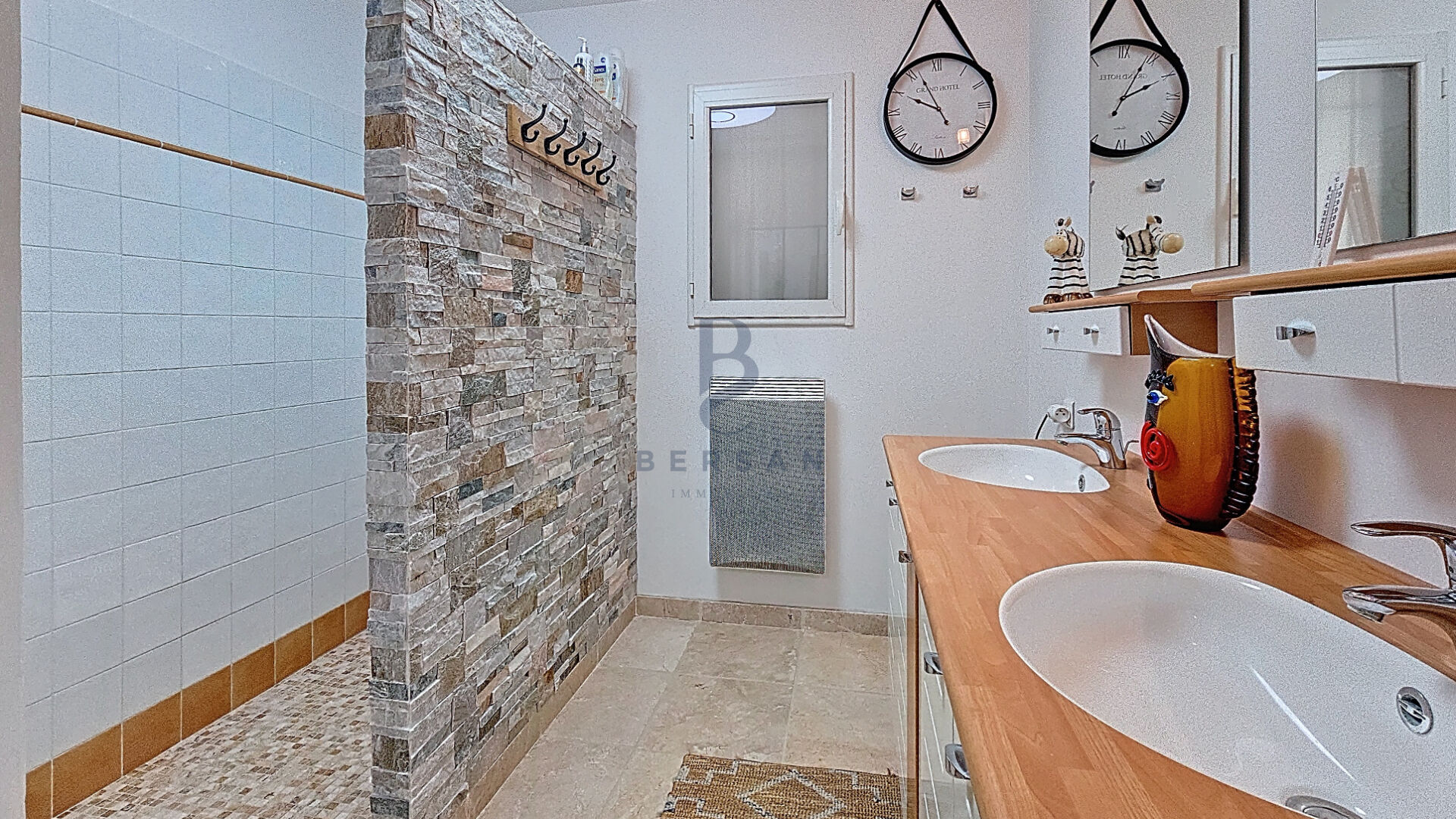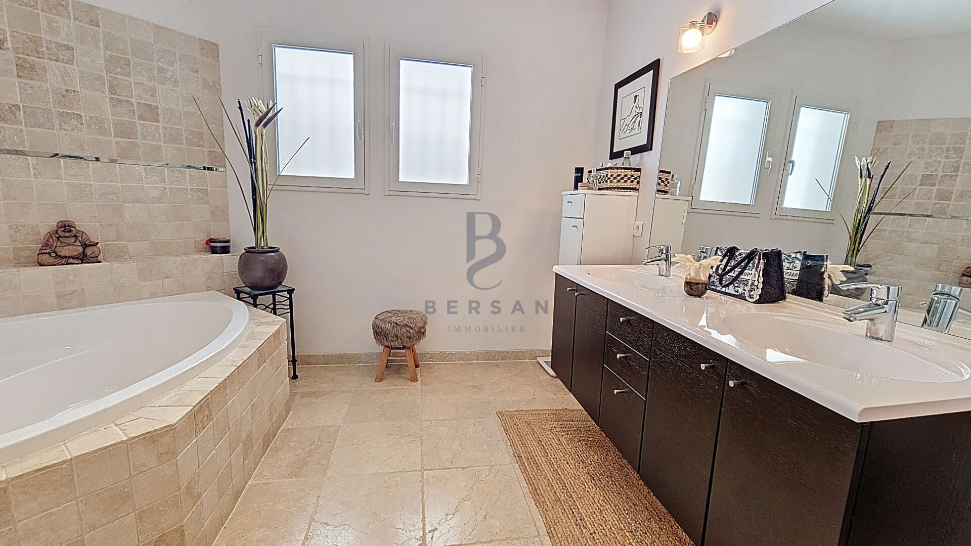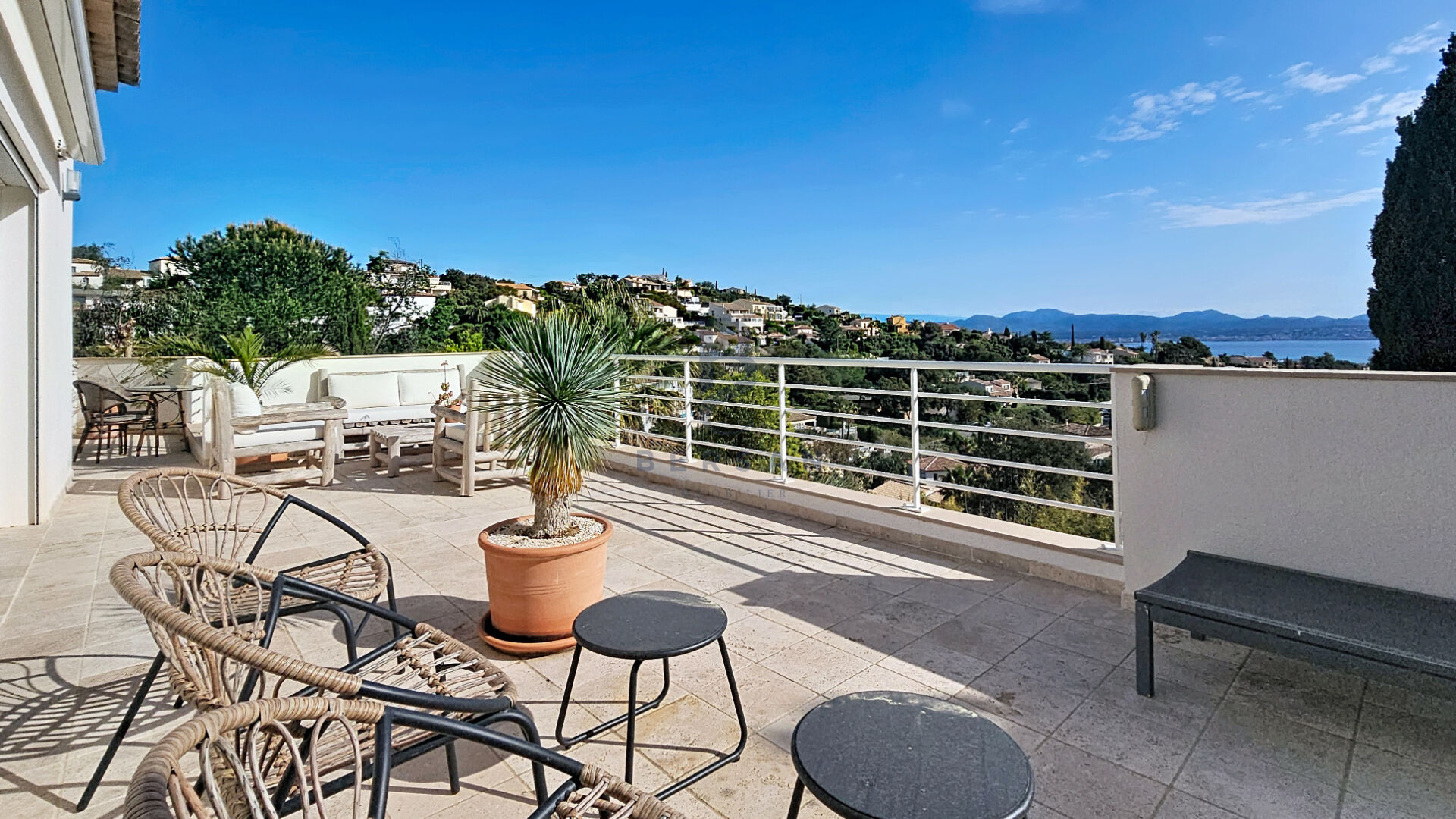 BERSAN Immobilier vous présente cette splendide villa idéalement située à Saint-Aygulf, en position dominante, offrant une vue mer dégagée et un environnement particulièrement calme, sans vis-à-vis. Dès le rez-de-chaussée, les pièces de vie profitent pleinement de la vue grâce à de larges baies à galandage. Le séjour et la salle à manger s'ouvrent sur les extérieurs avec une vue exceptionnelle sur toute la baie. La cuisine équipée ouverte, fonctionnelle, bénéficie également d'un accès à une terrasse couverte avec cette vue contemplative. Ce niveau accueille deux chambres, une salle de bains, une salle d'eau, un dressing, un WC de courtoisie ainsi qu'un garage double. En rez-de-jardin, deux chambres supplémentaires s'ouvrent directement sur la terrasse et la piscine avec cette même vue mer. Une salle d'eau et un WC complètent cet espace nuit. Un volume de plus de 50 m² reste à aménager selon vos besoins, en appartement indépendant ou pour une activité libérale. Construite en 2008, la villa offre des prestations haut de gamme avec chauffage au sol, adoucisseur d'eau, climatisation et une belle fluidité des espaces. L'exposition et les ouvertures favorisent une luminosité constante et une véritable connexion avec l'extérieur. L'équipe BERSAN Immobilier reste à votre disposition pour tout renseignement complémentaire ou pour organiser une visite.