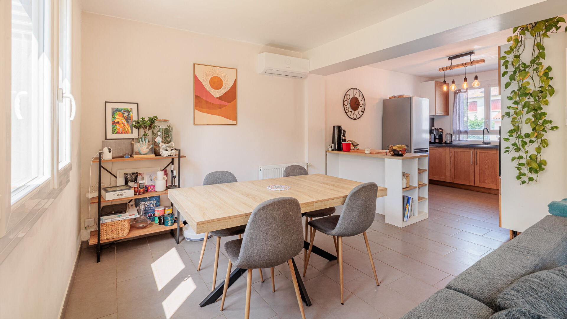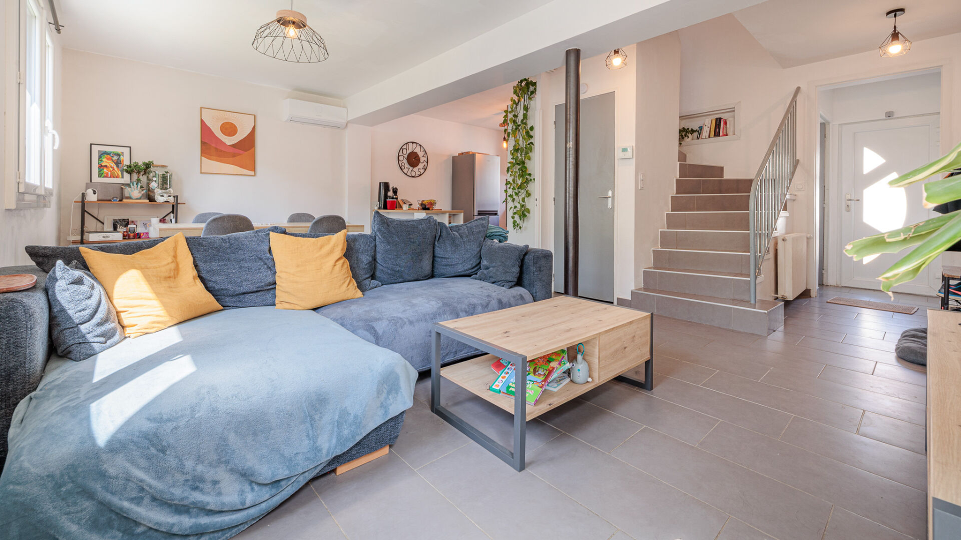 Exclusivité ! Visite virtuelle immersive 3D disponible sur demande ! Idéalement située au coeur de Villeneuve, à quelques minutes à pied de toutes les commodités, dans une rue calme, venez découvrir cette agréable maison familiale de type 5 d'environ 90 m² entièrement rénovée. Au rez-de-chaussée, vous trouverez une entrée avec WC, une belle pièce de vie ouverte sur la cuisine, ainsi qu'un accès direct au garage (14 m²) et au jardin. A l'étage, un palier dessert une salle de bains et quatre chambres, dont une suite avec sa salle d'eau. A l'extérieur, vous profiterez d'un jardin arboré d'environ 156 m², avec une terrasse carrelée à l'avant et une terrasse en bois à l'arrière. Les prestations récentes : centrale de traitement de l'air neuve, VMC neuve, menuiseries PVC double vitrage, climatisations réversibles Bosch installées en 2025 Maison mitoyenne par le garage et une chambre (configuration en miroir, garantissant l'absence de nuisances sonores). Aucun travaux à prévoir : vous n'avez plus qu'à poser vos valises ! (5.38 % honoraires TTC à la charge de l'acquéreur.) Copropriété de 52 lots - dont 52 lots habitation. Anne BOUGNOTTEAU (EI) Agent Commercial - Numéro RSAC : 834 410 847 - TOULOUSE.