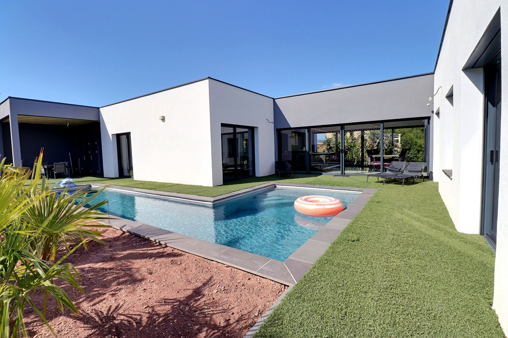 BENICIMMO Immobilier vous présente : Sublime Villa contemporaine [170m2], avec studio indépendant et piscine . Exposée Sud/Sud-Ouest, cette élégante maison offre confort et prestations haut-de-gamme sur 136 m2, de plain-pied. Dès l'entrée, le regard est attiré par le vaste séjour d'environ 70 m2, baigné de lumière, traversant, et ouvert sur les terrasses et la piscine. La cuisine américaine est spacieuse et bien équipée .Son arrière-cuisine attenante est un atout. Elle offre 4 chambres,1 salle de bains et deux salles de douches, dans un esprit résolument contemporain. Un bureau, aménagé dans l'ancien garage, offre un espace indépendant supplémentaire [15m2], idéal pour le télétravail ou la création d'une cinquième chambre selon les besoins. Le terrain paysagé de 779 m2 est agrémenté d'essences méditerranéennes. Encadrée par la villa, la piscine de 10 x 2,5 m, prolongée par un bassin de 5,40 x 3,40 m. Enfin, un studio indépendant de 20 m2. Véritable atout pour recevoir ou proposer une location saisonnière . Céline PERRIN -(EI)- Agent commercial immatriculé au RSAC de FREJUS sous le numéro 842 864 316. A visiter sans tarder en contactant votre agence Benicimmo immobilier au 0494516549 "Les informations sur les risques auxquels ce bien est exposé sont disponibles sur le site Géorisques: www.georisques.gouv.fr" Céline PERRIN (EI) Agent Commercial - Numéro RSAC : 84286431600018 - FREJUS.