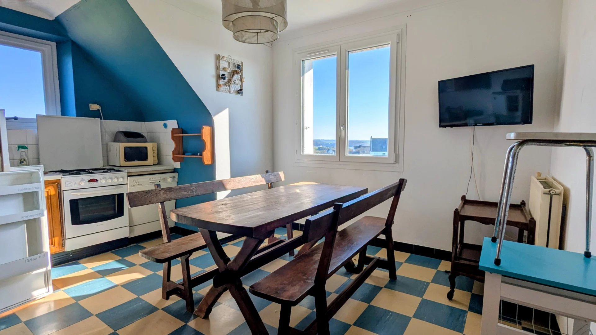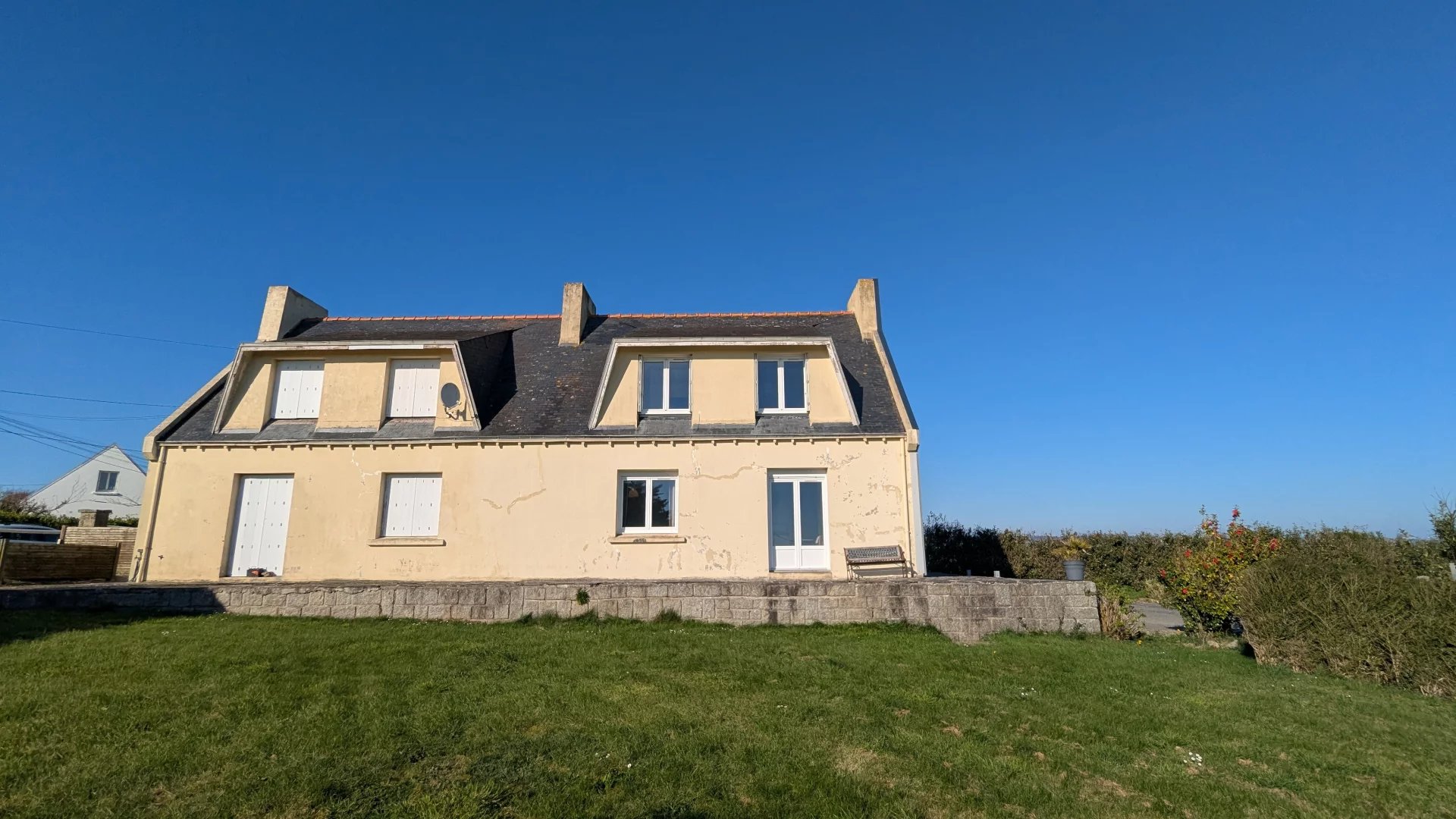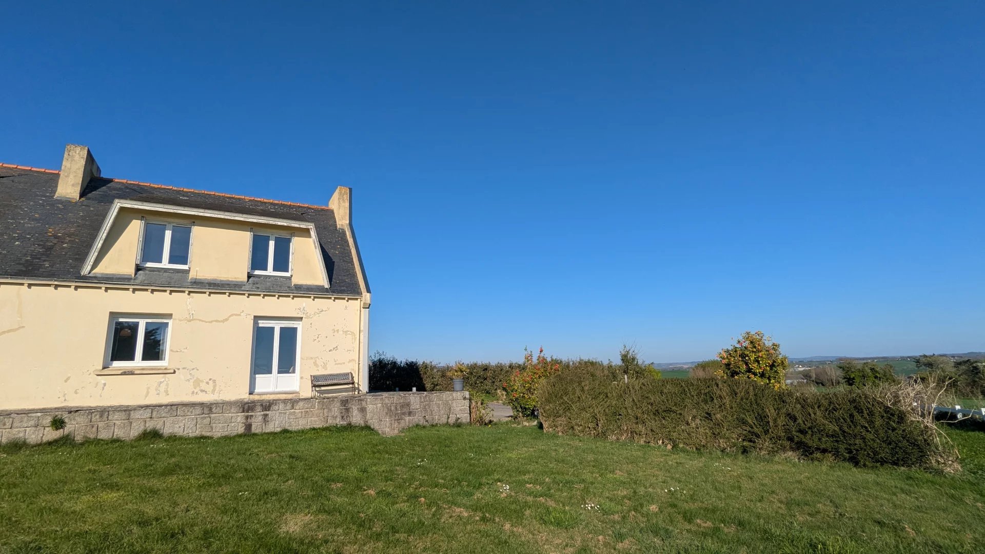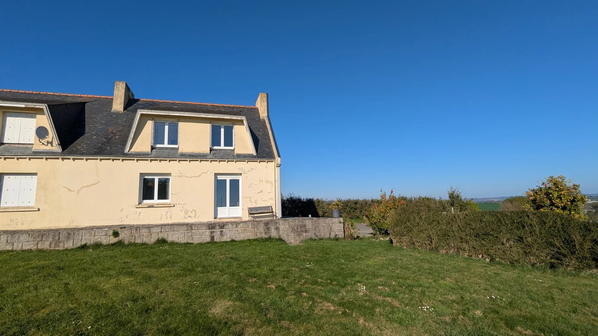 EXCLUSIVITE PORZAY IMMOBILIER EMPLACEMENT RARE, située en campagne proche de la plage cette maison mitoyenne des années 50/60 dispose d'une vue dégagée sur la baie et la campagne. Actuellement divisée en deux logements vous pouvez y faire du locatif ou une grande maison familiale. Informations complémentaires au 02.98.11.99.12 PORZAY IMMOBILIER