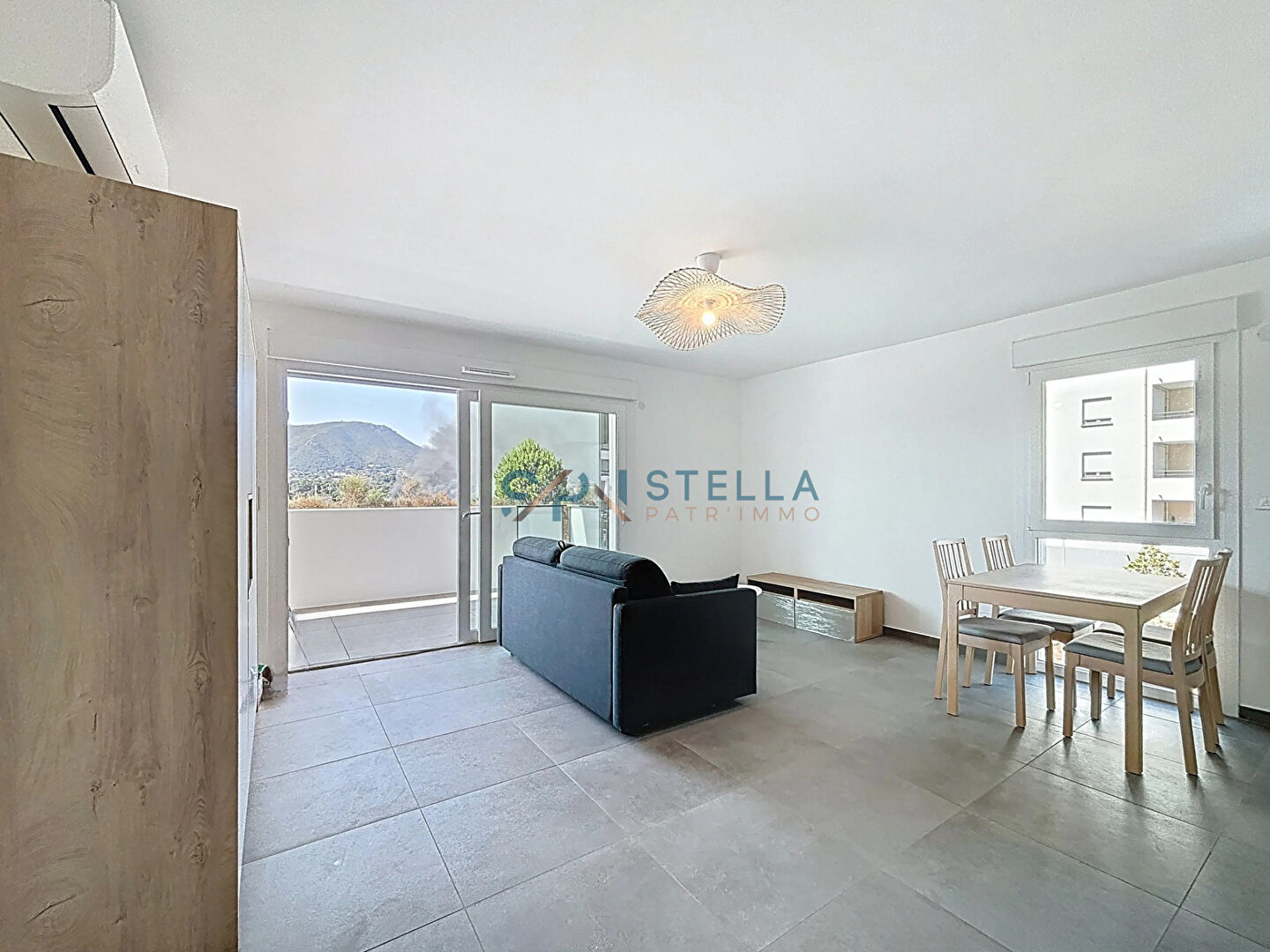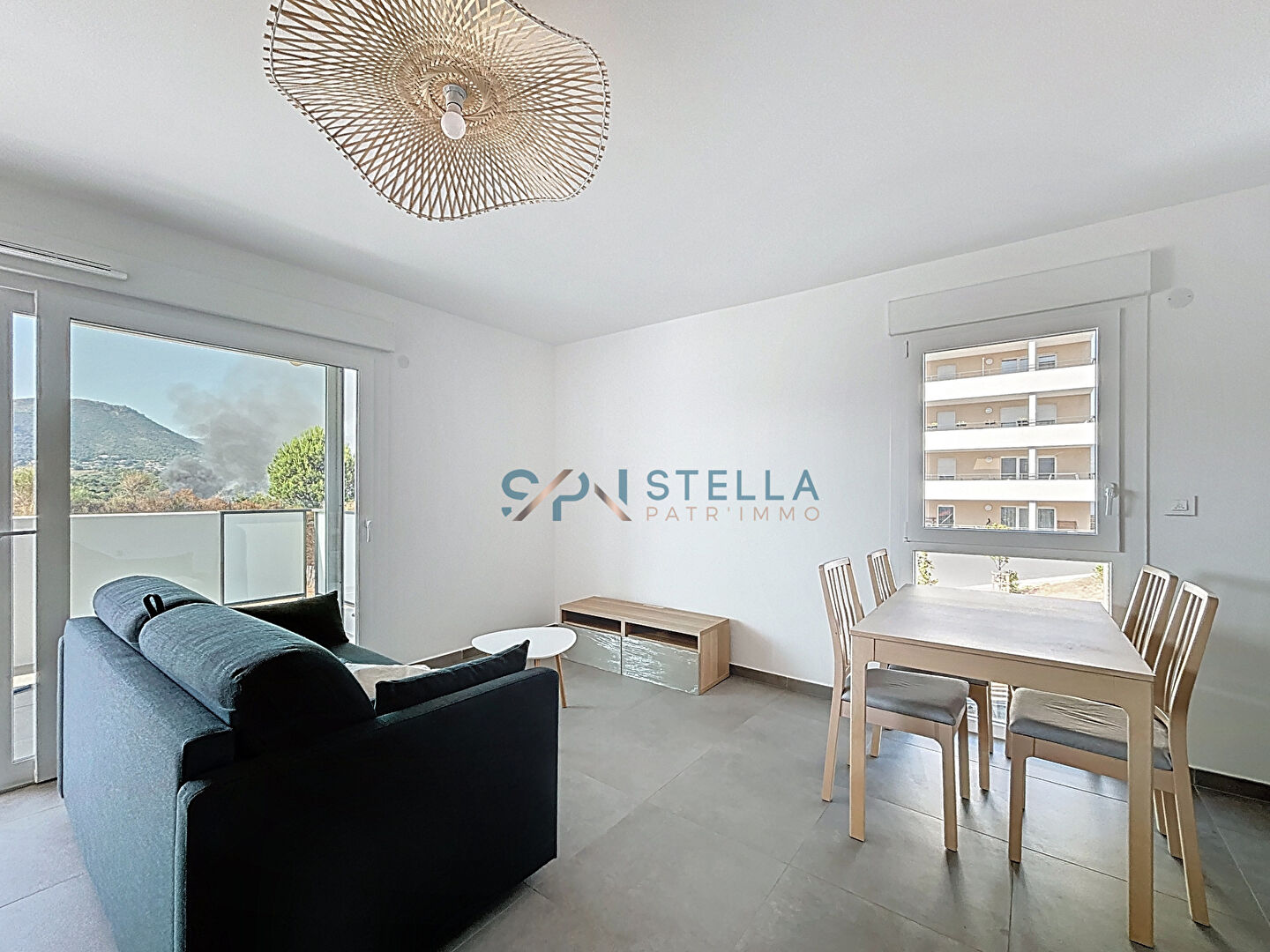 L'agence Stella Patr'Immo vous propose à la location annuelle un appartement neuf situé au Stiletto. Découvrez ce T3 meublé bénéficiant d'un emplacement privilégié ! Niché dans un quartier en plein essor, il se trouve à proximité immédiate du nouvel hôpital, d'un grand centre commercial, du centre culturel U Palatinu, et à seulement quelques minutes du centre-ville et des commerces de Baléone. Situé au 1er étage, cet appartement lumineux et fonctionnel se compose d'une cuisine neuve et entièrement équipée de la marque Ixina, ouverte sur un séjour donnant accès à une terrasse avec vue dégagée. Il comprend deux chambres climatisées avec rangements, dont l'une offre un accès direct à la terrasse. Vous y trouverez également : -Une salle d'eau moderne, -Un WC indépendant, -Un espace prévu pour la machine à laver, dissimulé derrière une porte abritant également le cumulus thermodynamique. L'appartement est équipé en domotique, vous permettant de piloter à distance tous vos équipements électriques. Possibilité de louer un garage en sous-sol en supplément (150 euros/mois). Loyer : 1 070 euros CC Dépôt de garantie : 1 070 euros Honoraires d'agence : 567 euros TTC (état des lieux inclus)