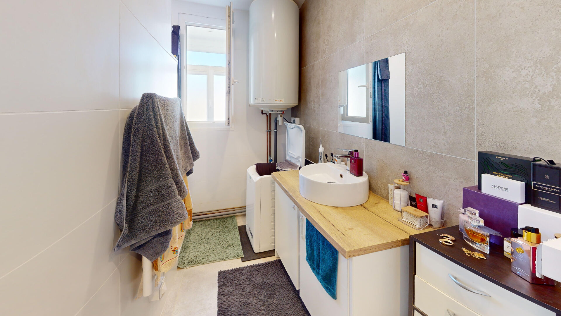 deux chambres, d'une salle d'eau, d'un WC séparé. Il est équipé de menuiseries extérieures PVC