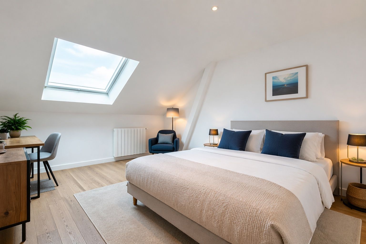 Prestations de qualité dont du parquet dans tout l'appartement, volumes atypiques liés au dernier étage, surfaces utiles importantes.