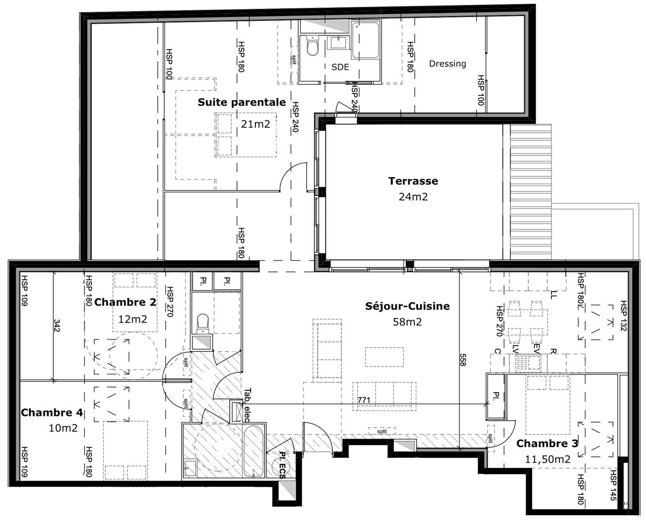 - Suite parentale de 21 m2 avec salle deau privative (douche + wc), dressing et accès direct à la terrasse par une double baie vitrée - une configuration rare.