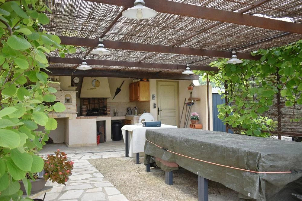 Villa idéalement située à proximité immédiate du village, des commerces et des écoles. La maison principale : Entrée Séjour chaleureux avec accès terrasse Cuisine équipée fonctionnelle 2 chambres Salle d’eau WC En complément : Garage Atelier Sous-sol aménagé: buanderie et chambre d’appoint Appartement indépendant: Un vrai atout pour rentabilité locative ou famille : Entrée indépendante Séjour avec cuisine ouverte équipée 1 chambre Salle de bain Mezzanine (coin nuit ou bureau) Parfait pour location saisonnière / annuelle ou logement indépendant. Extérieurs: Un cadre verdoyant et parfaitement exploité : Jardin arboré sans vis-à-vis Terrasse conviviale Cuisine d’été couverte avec four à pizza & barbecue Espace détente ombragé Garage indépendant Ambiance provençale idéale pour recevoir famille et amis. Les points forts: Double habitation (maison + appartement récent) Fort potentiel locatif Terrain plat et agréable Espaces extérieurs aménagés Quartier calme et recherché Proximité accès, commerces et écoles Idéal pour : Résidence principale + revenu locatif Famille avec adolescent / parent Investisseur (location saisonnière très demandée dans le secteur) À visiter sans tarder ! Contactez Caroline au 06.44.70.16.95 pour organiser une visite.
