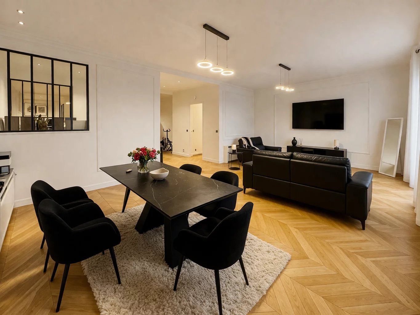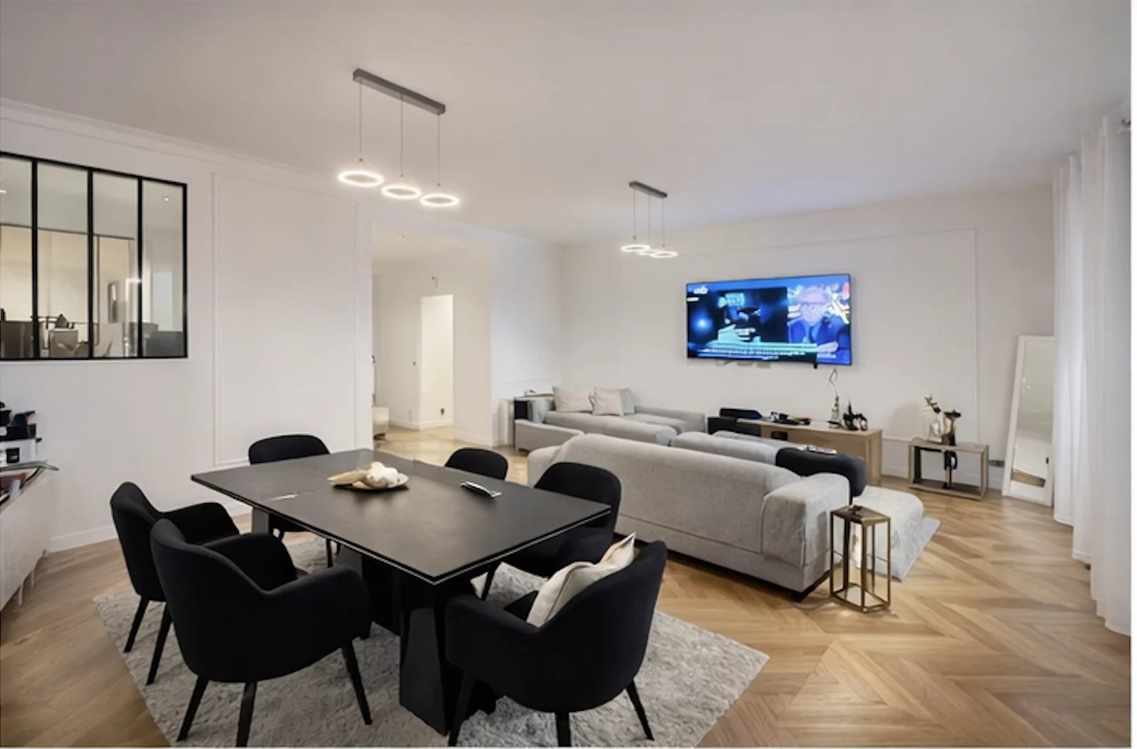 Idéalement situé à l’angle de la rue de Passy, au cœur du très recherché 16ème arrondissement, découvrez ce superbe appartement familial de grand standing, au 4ème étage d’un immeuble de qualité. D’une surface généreuse de 194 m², ce bien rare séduit immédiatement par ses volumes exceptionnels et sa luminosité. Il se compose d’un vaste espace de réception avec salon et salle à manger, sublimé par un magnifique parquet en pointe de Hongrie, apportant élégance et cachet. La cuisine ouverte, entièrement équipée, s’intègre parfaitement à l’espace de vie pour un confort moderne et convivial. L’espace nuit offre actuellement 4 belles chambres avec la possibilité d’en aménager une 5ème selon vos besoins (bureau, chambre d’enfant ou suite supplémentaire). L’appartement dispose également de : • 3 salles de bains • 2 toilettes • Nombreux rangements Prestations de qualité, volumes rares, localisation premium : ce bien réunit tous les critères d’un appartement familial d’exception. - Emplacement recherché à proximité immédiate des commerces de la rue de Passy, des écoles réputées et des transports. Une cave complète ce bien. Un bien rare sur le secteur – à visiter sans tarder.