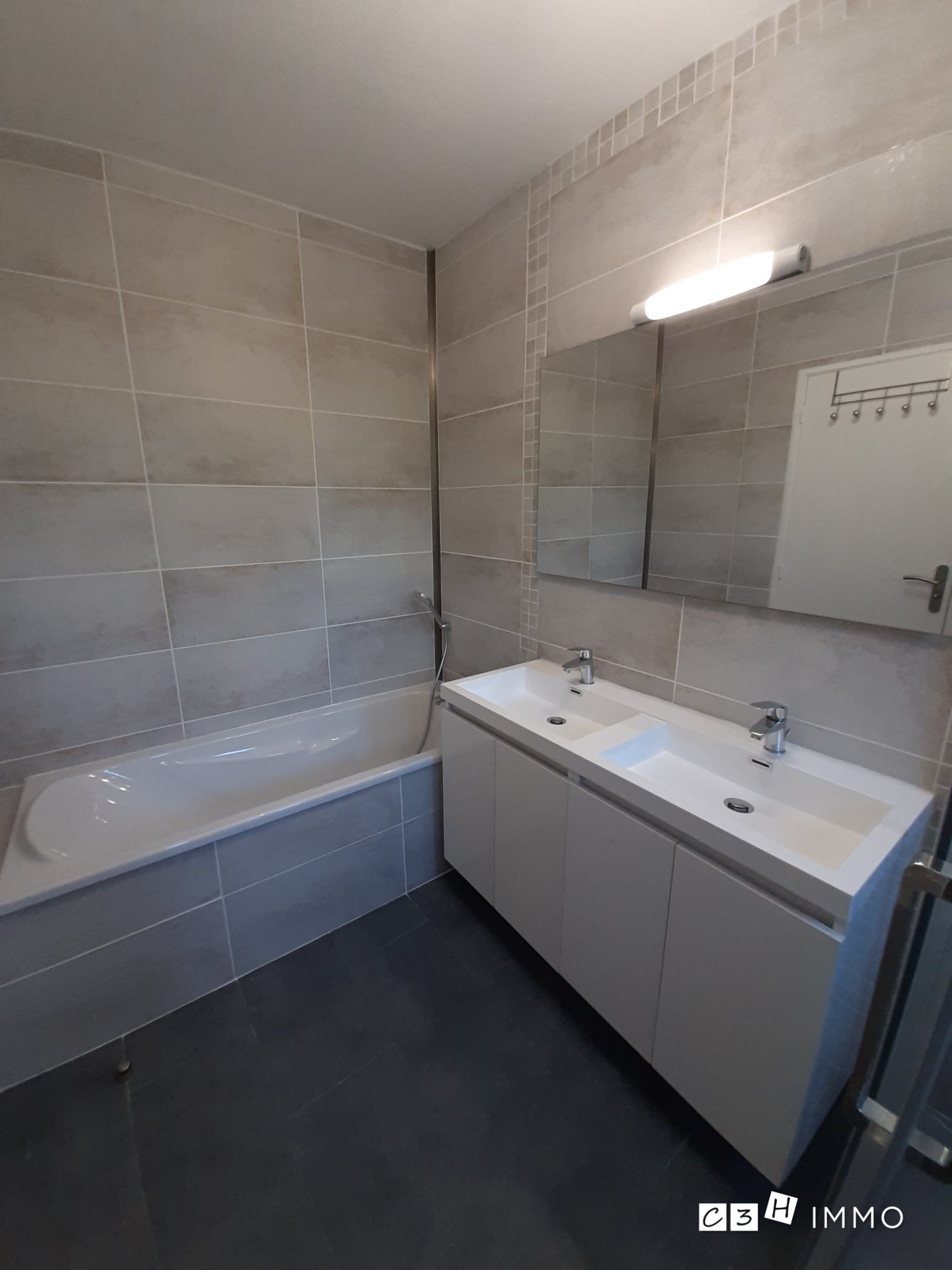 L'espace nuit se compose de trois chambres avec rangements intégrés (9,12 m², 9,43 m² et 9,67 m²), d'une salle de bain contemporaine de 5,58 m² équipée d'une baignoire, d'une douche et d'une double vasque, ainsi que de toilettes indépendantes.