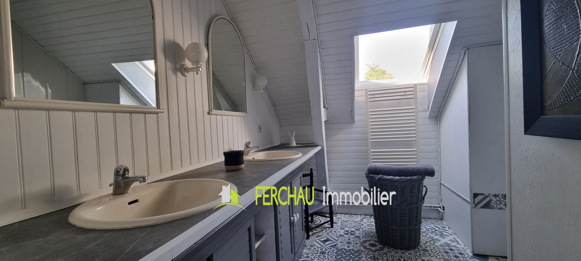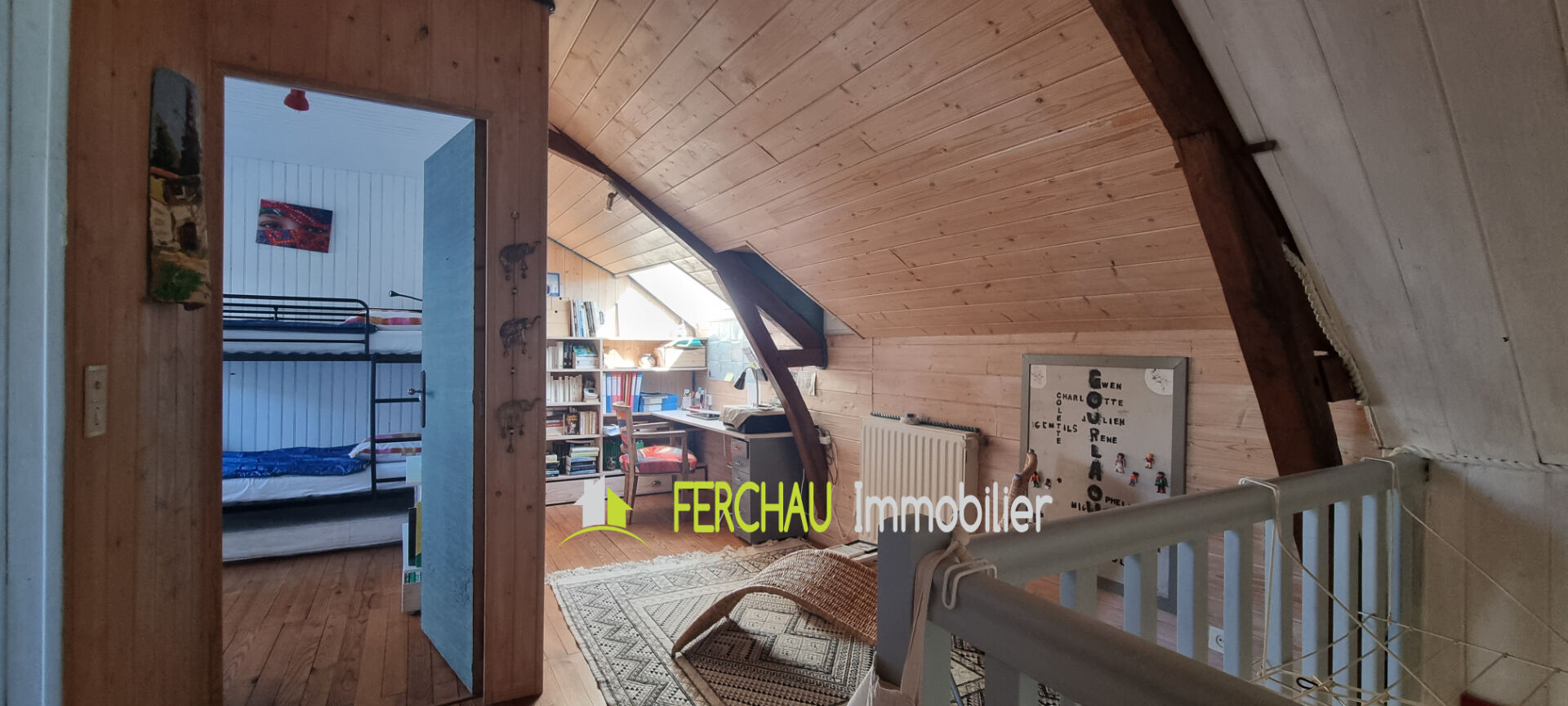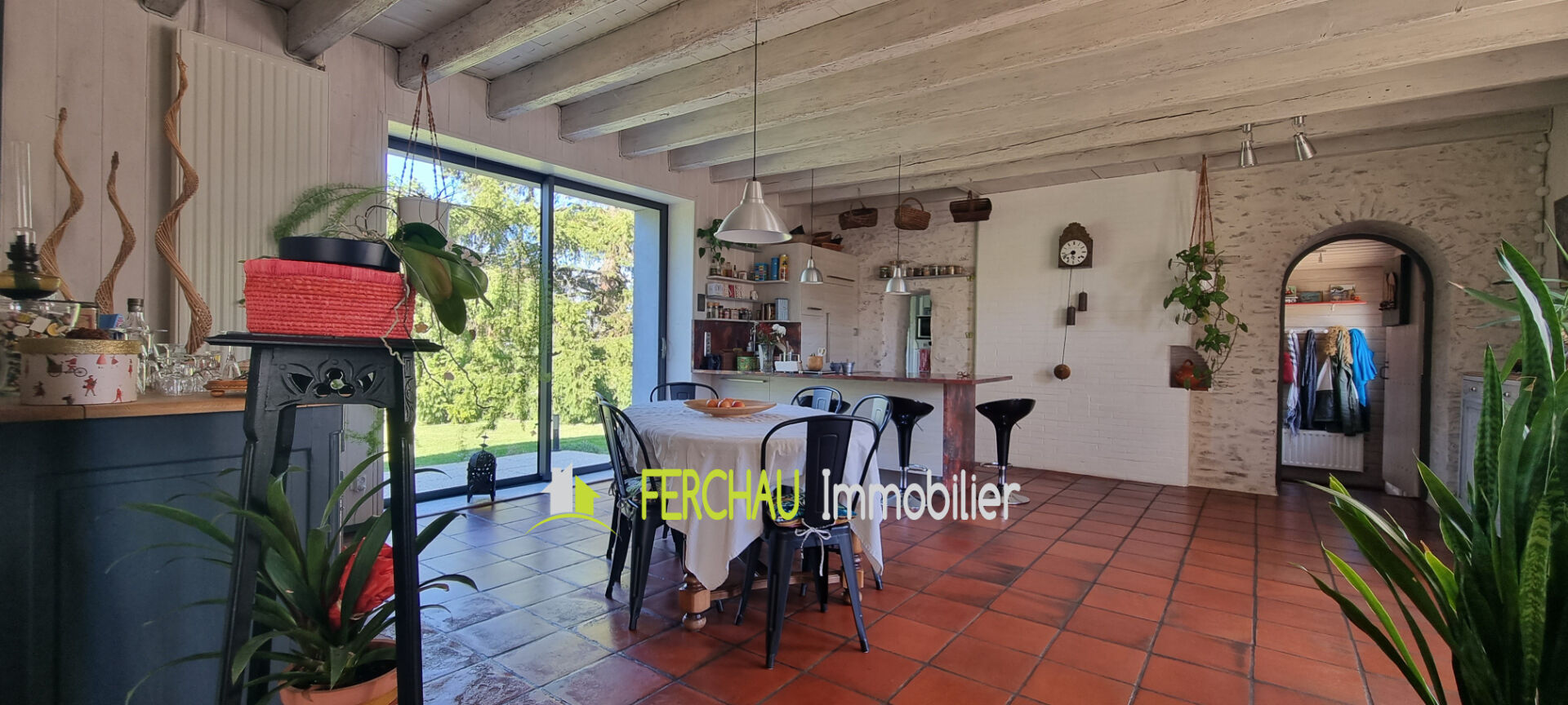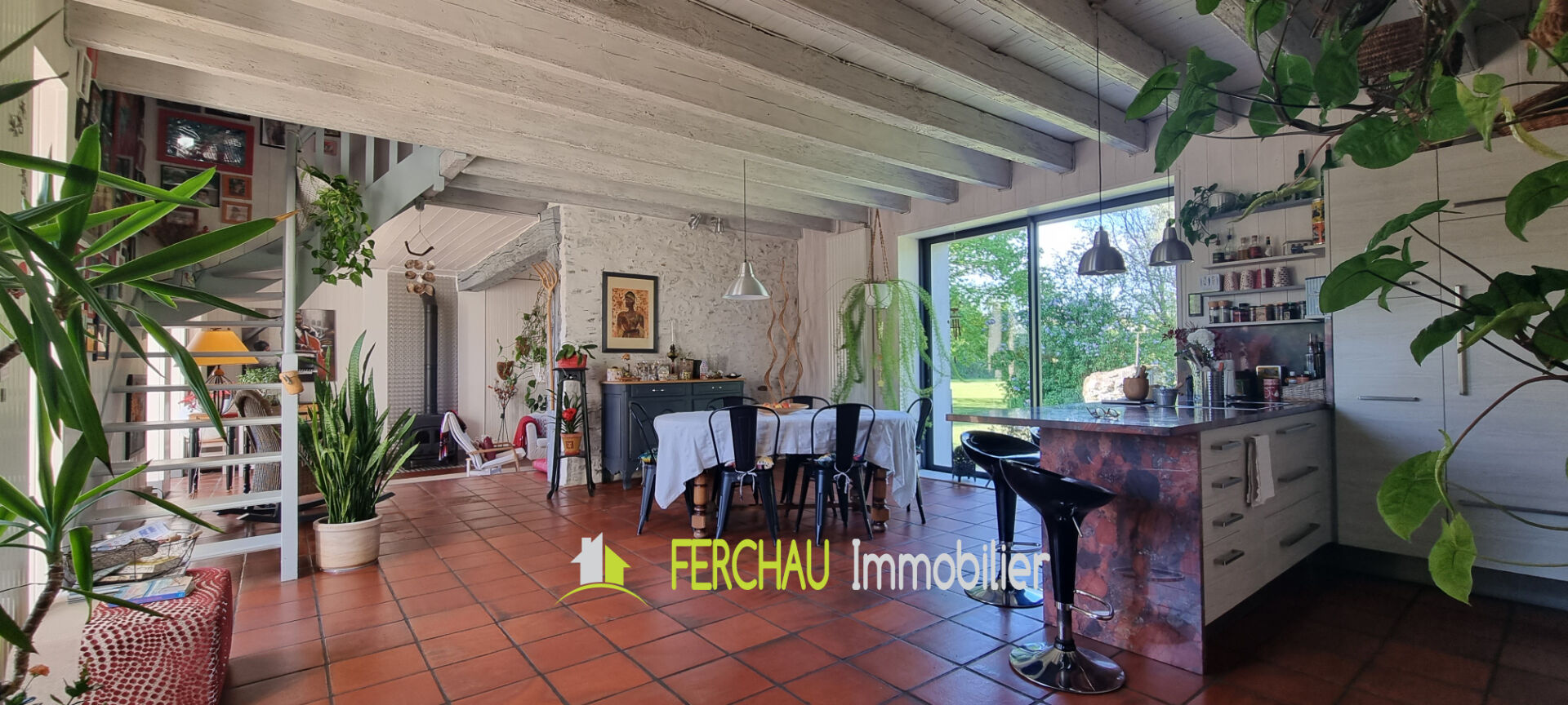 Située à seulement 3 mins du bourg, cette charmante maison en pierre entièrement rénovée saura vous séduire par son environnement privilégié. Elle bénéficie d'un système de chauffage performant par aérothermie, complété par un poêle à bois pour plus de confort et de convivialité. Dès l'entrée, vous découvrirez un espace fonctionnel avec placard, ainsi qu'un WC indépendant avec lave-mains. La pièce de vie, lumineuse et traversante (exposition Nord/Sud), offre une belle surface de 62 m² avec un salon/salle à manger et une cuisine ouverte, aménagée et équipée. La maison dispose de 4 chambres, dont une au rez-de-chaussée avec sa salle d'eau privative, idéale pour une vie de plain-pied ou pour accueillir. A l'étage, vous trouverez un espace bureau, 3 autres chambres ainsi qu'une seconde salle d'eau et WC indépendant. A l'extérieur, le cadre est tout simplement exceptionnel : un parc arboré de 8 351 m², entièrement clôturé, agrémenté d'un plan d'eau et d'un puits, parfait pour les amoureux de nature et de tranquillité. Une dépendance complète ce bien, comprenant une chaufferie et un espace cellier. LES ATOUTS : magnifique parcelle arborée, le système de chauffage, la surface de la pièce de vie, une chambre et salle d'eau de plain-pied, maison raccordée à la fibre. Pour plus d'informations ou organiser une visite demandez Karen FERCHAU. www.ferchau-immobilier.fr https://www.facebook.com/ferchauimmobilier.fr https://www.instagram.com/ferchau_immobilier/ Une dépendance où est présente la chaufferie ainsi qu'une partie cellier. Possibilité d'acheter une dépendance en supplément d'une surface totale de 150 m² sur laquelle un certificat d'urbanisme opérationnel a été obtenu en vu d'un changement de destination et donc pouvant être transformée en habitation. Pour plus de renseignements demandez Karen . www.ferchau-immobilier.fr https://www.facebook.com/ferchauimmobilier.fr https://www.instagram.com/ferchau_immobilier/ (4.50 % honoraires TTC à la charge de l'acquéreur.)