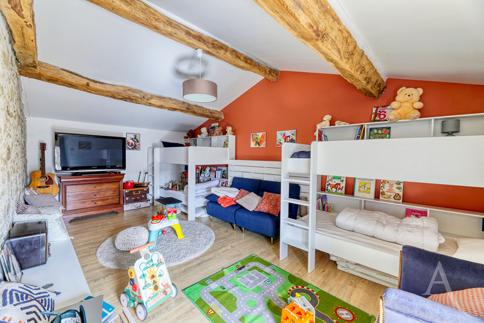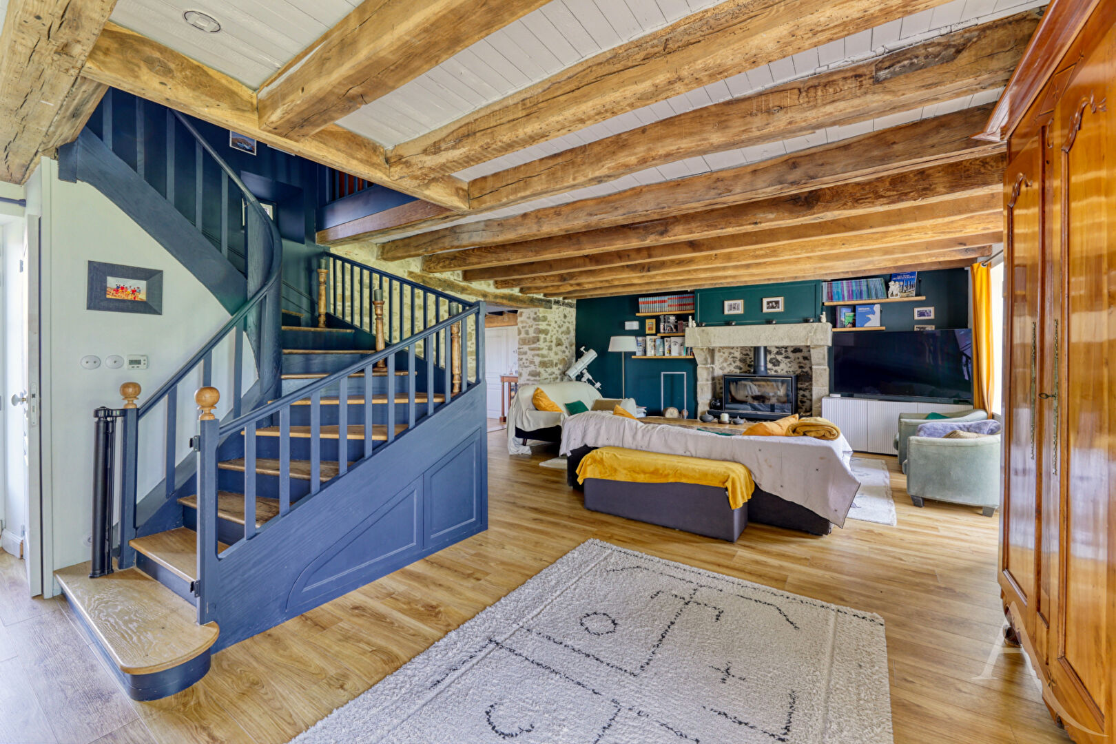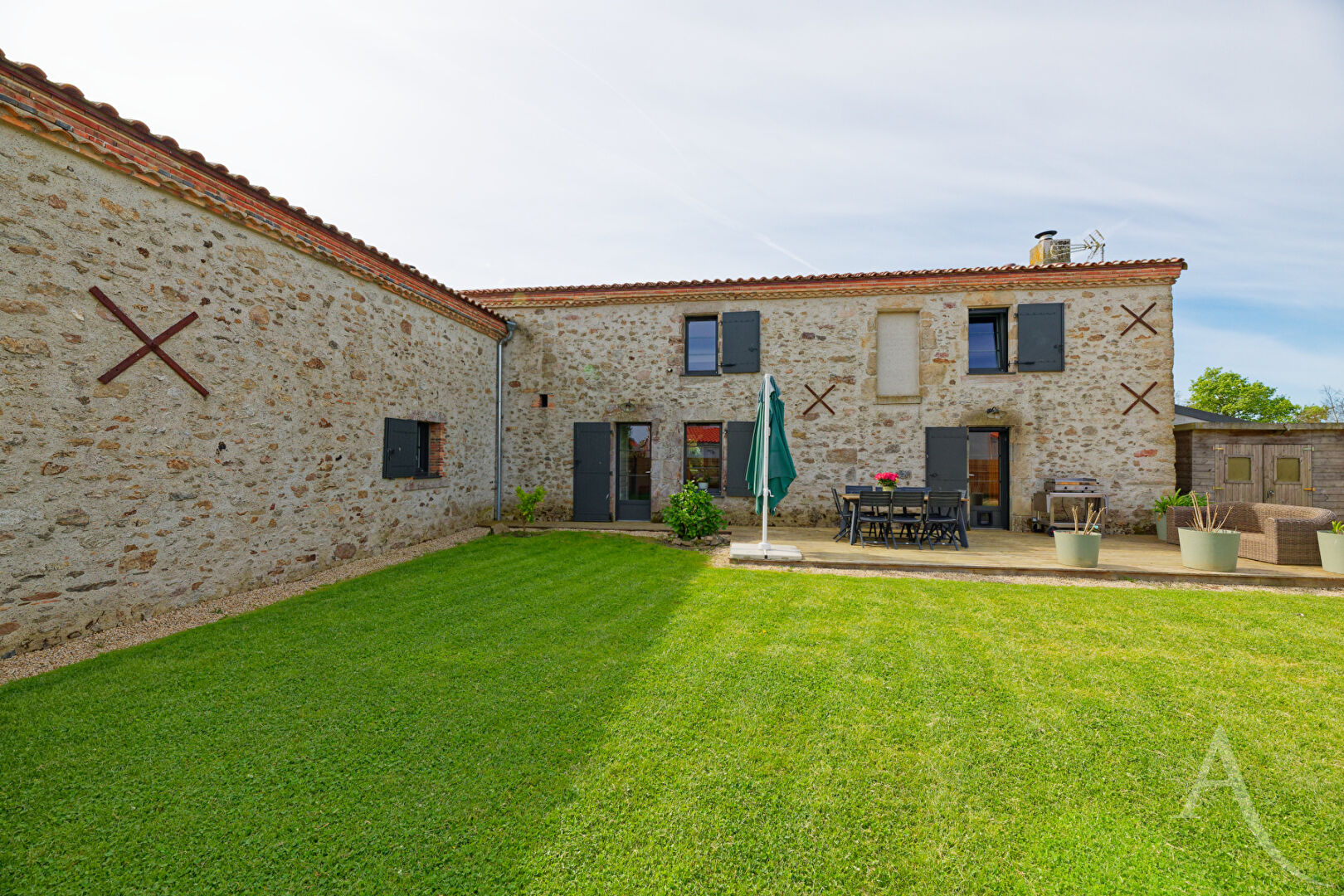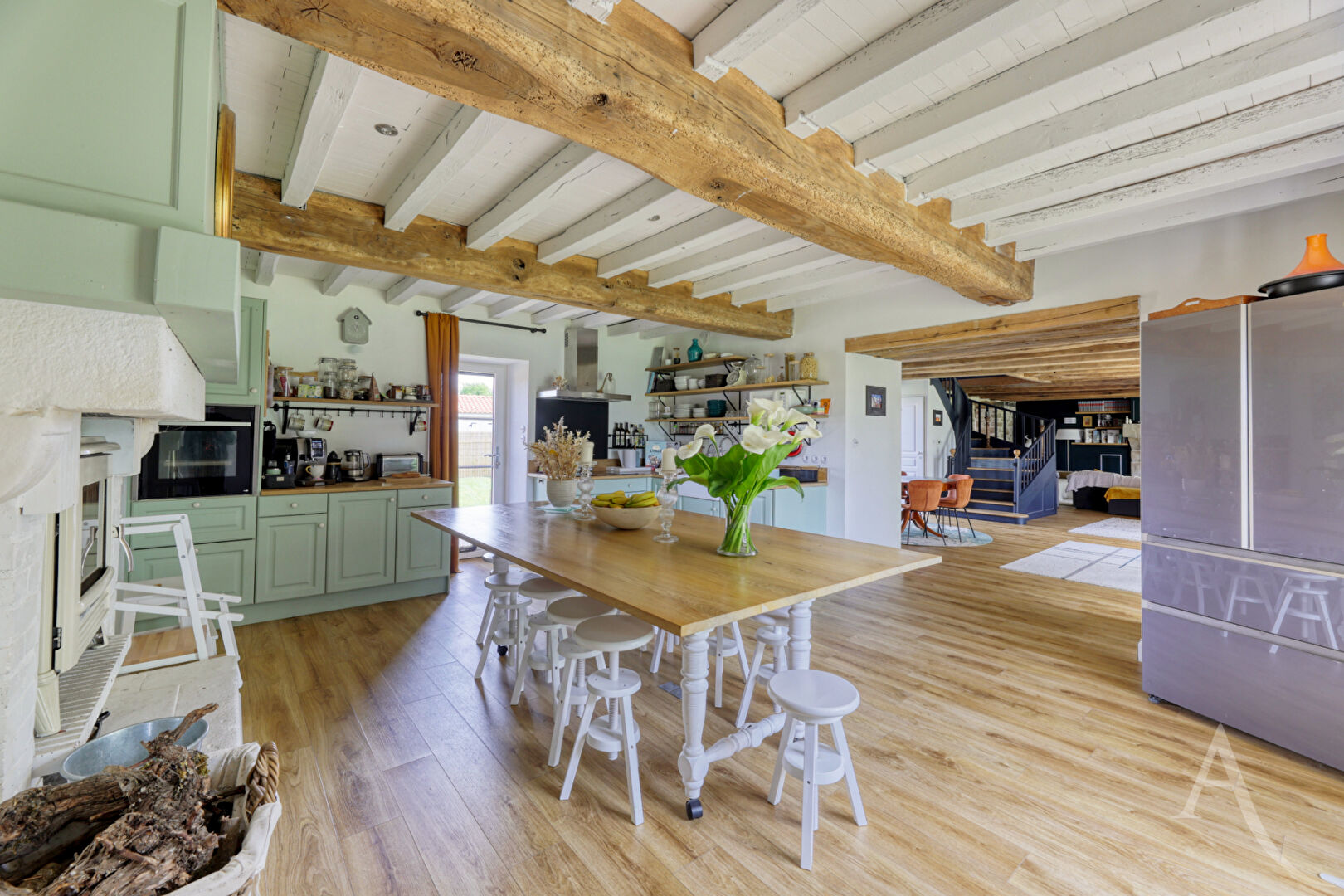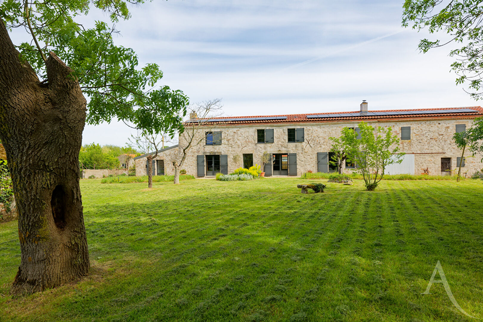 Votre agence L'Adresse vous propose en EXCLUSIVITÉ cette élégante demeure en pierre, entièrement rénovée avec goût, où le charme de l'ancien rencontre des prestations de qualité. Dès l'entrée, le ton est donné : un espace à part entière, sublimé par une hauteur sous plafond remarquable, une mezzanine ouverte et une superbe bibliothèque sur mesure encadrant une cheminée pleine de caractère. Un lieu chaleureux, baigné de lumière, qui offre immédiatement une atmosphère unique et authentique. Dans le prolongement, la maison dévoile un vaste espace de vie de plus de 80 m² comprenant salon, séjour et cuisine. Les volumes, les matériaux nobles et la présence de deux poêles à bois créent un cadre de vie à la fois convivial et élégant. Le confort est également au rendez-vous grâce au plancher chauffant et aux panneaux solaires. A l'étage, vous découvrirez quatre chambres, dont une suite parentale avec salle d'eau, WC et dressing. Une seconde chambre dispose de sa propre salle d'eau, tandis qu'une troisième chambre, idéale pour un enfant, bénéficie d'une salle de bains communicante. Une mezzanine ainsi qu'un dortoir complètent cet espace, offrant des possibilités supplémentaires d'accueil ou d'aménagement. L'ensemble de la maison séduit par sa luminosité et son ambiance chaleureuse. A l'extérieur, un magnifique terrain arboré d'environ 7 200 m² vous garantit calme et sérénité. Plusieurs dépendances viennent enrichir la propriété : une grange de stockage, une seconde grange en pierre offrant un fort potentiel de réhabilitation, ainsi qu'une maison attenante à repenser selon vos projets. Une propriété de caractère, unique sur le marché, idéale pour les amateurs de belles pierres et de volumes atypiques. Pour plus d'informations contactez-nous au 0249624200 ou sur ladresse.com Laura HERSANT (EI) Agent Commercial - Numéro RSAC : 947 901 716 - LA ROCHE SUR YON.