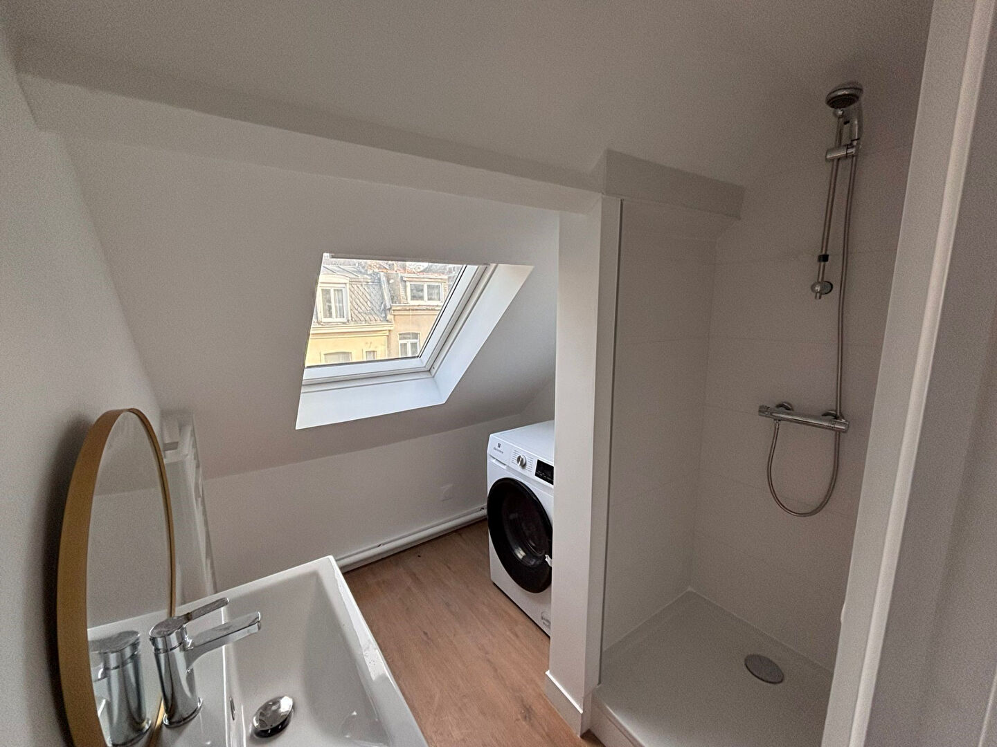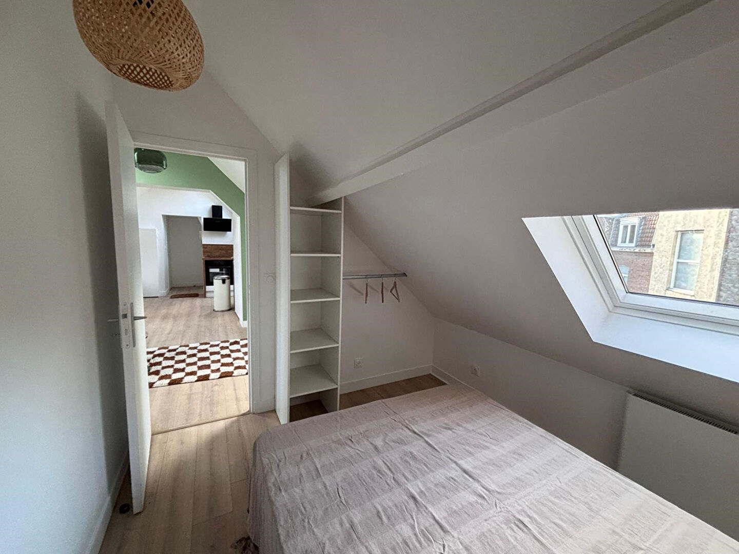 Appartement T3 meublé, entièrement refait à neuf il y a moins d'un an, situé secteur Beaux-Arts à Lille, à proximité immédiate du métro, au 3ème et dernier étage d'une petite copropriété. Le logement offre de beaux volumes sous toiture, avec une surface de plus de 50 m² au sol. La surface habitable (loi Carrez) est de 25,35 m², optimisée. Il se compose : - d'un séjour lumineux avec cuisine ouverte équipée (four, réfrigérateur, plaques de cuisson, hotte) - de 2 chambres indépendantes, chacune avec lit double et dressing - d'une salle de bains moderne avec douche et lave-linge séchant - WC séparés Chauffage et eau chaude individuels électriques. Loyer HC : 1 240 euros/mois Provision charges : 40 euros/mois (eau froide, entretien et électricité des parties communes, taxe d'ordures ménagères) Soit un loyer charges comprises de 1 280 euros/mois Contact : 03 74 09 46 00 - contact@vereecke-immobilier.com Copropriété de 8 lots - dont 6 lots habitation.