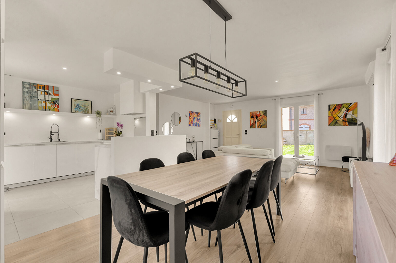 Votre agence Immo de France a le plaisir de vous proposer à la vente cette magnifique maison de plain-pied, idéalement située sur la charmante commune de Saint-Geniès-Bellevue, entièrement rénovée avec goût en 2024. D'une surface au sol de 113 m², elle offre une distribution optimale : Dès l'entrée, vous découvrirez un spacieux séjour baigné de lumière grâce à sa double exposition sud-ouest et nord-ouest. Cet espace de vie convivial s'ouvre sur une agréable terrasse intimiste ainsi qu'un jardin, parfaits pour profiter pleinement des beaux jours. La cuisine semi-ouverte, fonctionnelle et accueillante, est idéale pour partager des moments chaleureux en famille ou entre amis. Un couloir dessert le coin nuit où vous trouverez trois chambres confortables, une salle de bains équipée d'une baignoire d'angle, d'une douche et d'un meuble double vasque, ainsi qu'un WC indépendant. Un garage complète ce bien et offre un espace de stockage supplémentaire grâce à son aménagement. Vous bénéficierez également d'une pièce buanderie pratique au quotidien. La maison a fait l'objet d'une rénovation complète en 2024 avec des matériaux de qualité et beaucoup de goût. Une climatisation réversible équipe le séjour pour un confort optimal en toute saison. Aucun travaux à prévoir : il ne vous reste plus qu'à poser vos valises ! Saint-Geniès-Bellevue séduit par son cadre de vie paisible tout en restant proche des commodités. La ligne de bus 33, située juste en face de la maison, permet de rejoindre facilement les environs. Un bien clé en main, alliant confort, modernité et sérénité - une opportunité rare à découvrir sans tarder ! (6.00 % honoraires TTC à la charge de l'acquéreur.)