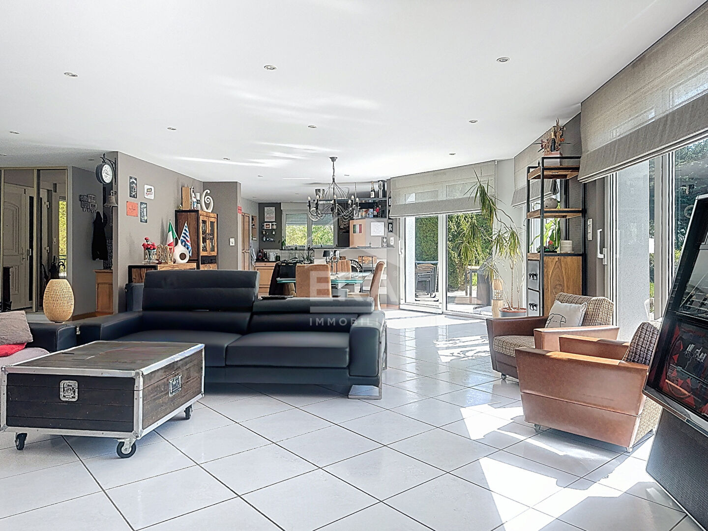 Votre agence ERA Saintignon vous propose de découvrir cette MAGNIFIQUE maison de 191 m² à vendre à Chenières, un pavillon récent de GRAND STANDING construit en 1999, idéalement exposé PLEIN SUD pour un ensoleillement optimal. Située sur un TERRAIN EXCEPTIONNEL de 11 710 m², cette propriété offre un cadre de vie paisible et SANS VIS-A-VIS, à seulement 5 km des commerces et à proximité immédiate des écoles. La gare est également à 10 minutes, facilitant vos déplacements. Cette maison de 8 pièces comprend 3 chambres, dont une SUITE PARENTALE de 35 m² avec DRESSING et salle d'eau au rez-de-chaussée, un vaste séjour de 63 m² LUMINEUX avec cheminée insert, bénéficiant d'une exposition sud avec vue jardin. La CUISINE OUVERTE, aménagée et équipée, s'intègre parfaitement à l'espace de vie. Vous trouverez également au rez-de-chaussée une arrière CUISINE de 8 m² et une BUANDERIE de 11 m². A l'étage se trouve 2 chambres dont une à rénover, une salle d'eau et un GRENIER AMENAGEABLE de 70 m² au sol. Le confort est assuré par un CHAUFFAGE AU SOL combinant fuel et électrique, ainsi qu'une CLIMATISATION. Vous apprécierez les nombreuses prestations : fenêtres en PVC double vitrage, volets électriques, assainissement tout à l'égout, adoucisseur d'eau au CO², 3 terrasses totalisant 75 m², PISCINE CHAUFFEE de 11 mètres par 4 mètres, sous-sol avec cave de 27 m² et garage 4 voitures. L'état général est excellent, garantissant un bien prêt à vivre dans un environnement CALME ET SANS VIS-A-VIS. Contactez dès aujourd'hui votre agence ERA Saintignon pour organiser une visite ! Prix du bien : 690 000 euros Honoraires à la charge du vendeur Date de réalisation du diagnostic énergétique: 08/11/2021 Consommation énergie primaire : 165 kWh/m²/an Consommation énergie finale : Non communiqué Les informations sur les risques auxquels ce bien est exposé sont disponibles sur le site Géorisques : www.georisques.gouv.fr Cindy COTTET (EI) Agent Commercial - Numéro RSAC : 993168061 - Val de Briey.