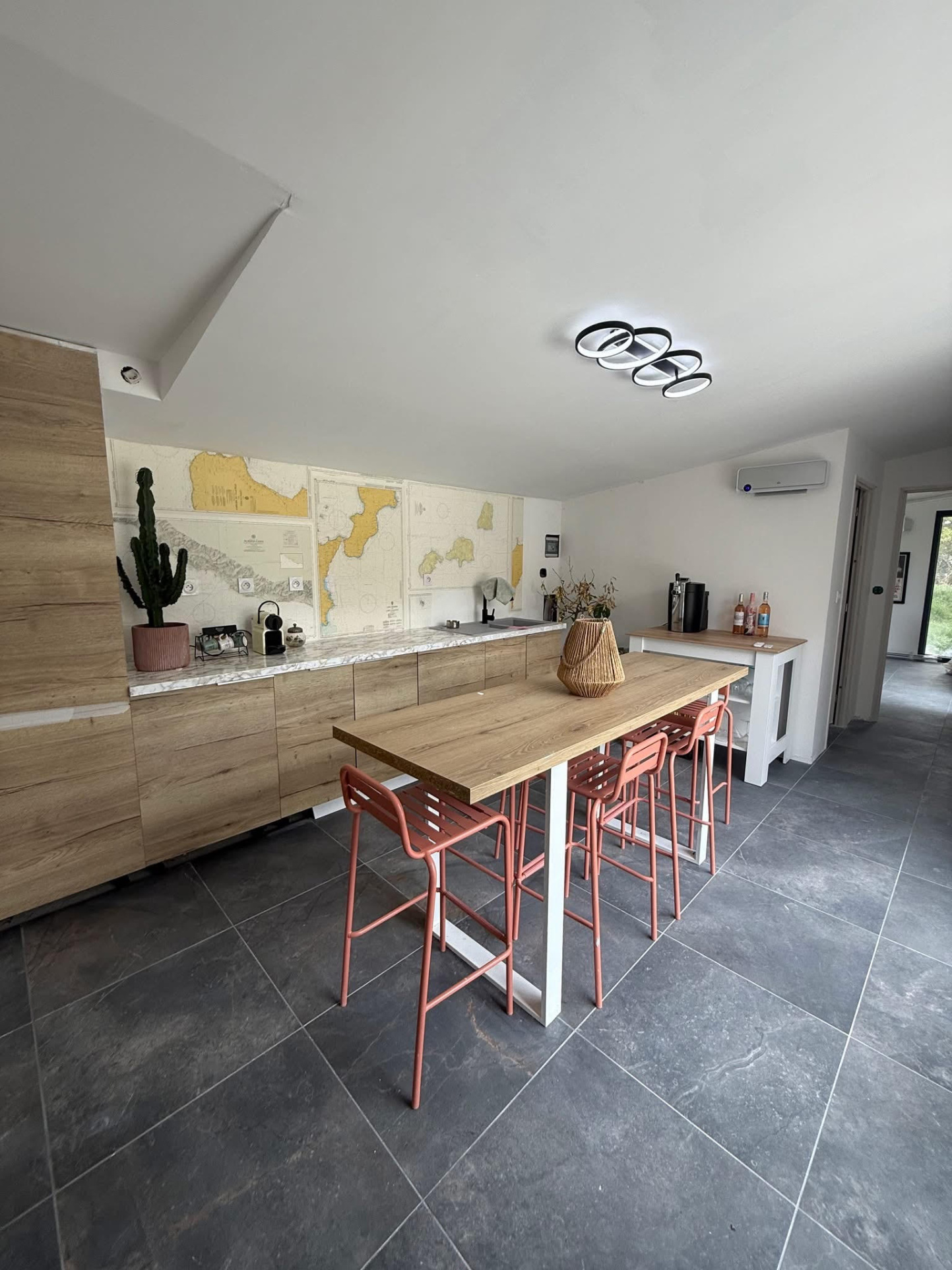 Développant 175 m2 habitables, elle offre une remarquable pièce de vie d'environ 70 m2 sublimée par ses murs en galets, une cuisine indépendante entièrement équipée, ainsi que 3 chambres dont une suite parentale avec salle de bain complète et terrasse privative.