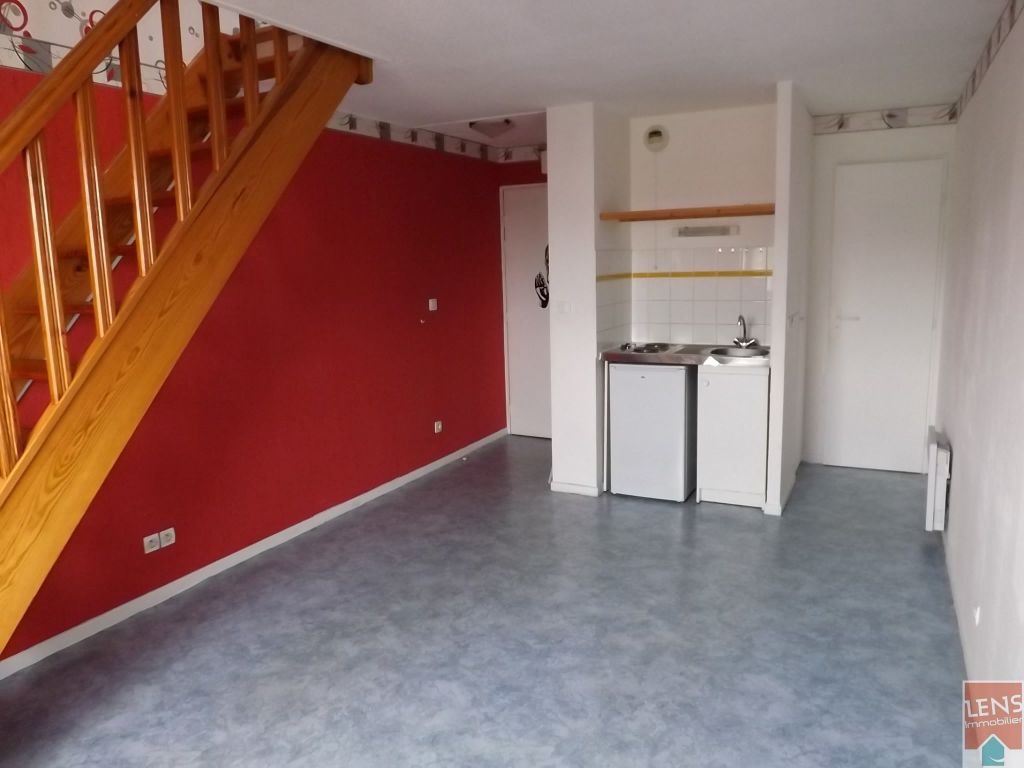LENS - proche université et faculté , appartement T2 en duplex au coeur d'une résidence privée comprenant entrée, séjour avec coin cuisine équipée, chambre et une chambreen mezzanine. Parking. Secteur idéal et calme, à voir !! Charges: 55 euros/ mois avec régularisation annuelle. Dépôt de garantie : 305 euros Honoraires charge locataire: 280 euros Etat des lieux locataire: 105 euros