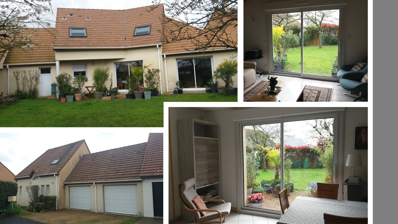 Quartier proche du Golf, calme 107 m² loi Carrez = RDC + étage RDC = 1 chambre parentale + 1 Salle d’eau attenante privative, 1 WC indépendant 1 Salle à manger + 1 Salon indépendant, 2 larges baies vitrées neuves accès jardin 1 Cuisine aménagée équipée (four, plaque cuisson, réfrigérateur, lave-vaisselle, hotte aspirante) 1 Buanderie accès direct garage / cuisine 2 garages (portes sectionnelles motorisées / télécommandes, accès direct jardin, double grenier isolé) Fibre installée Haut Débit ÉTAGE= 3 chambres avec placards sous pente + 1 Salle de bain avec WC (Tous VELUX nouvelle génération avec volets extérieurs électriques, gain d’isolation été / hiver) Terrain arboré sans vis-à-vis 550m² (cerisier, pommier, mûrier platane, érable du Canada, potager ... ) Chauffage Gaz avec ballon eau chaude 120L / entretien – garantie par propriétaire DPE (avant rénovation énergétique159 kWh/m²/an (C) et 32 kg CO2/m²/an (D))