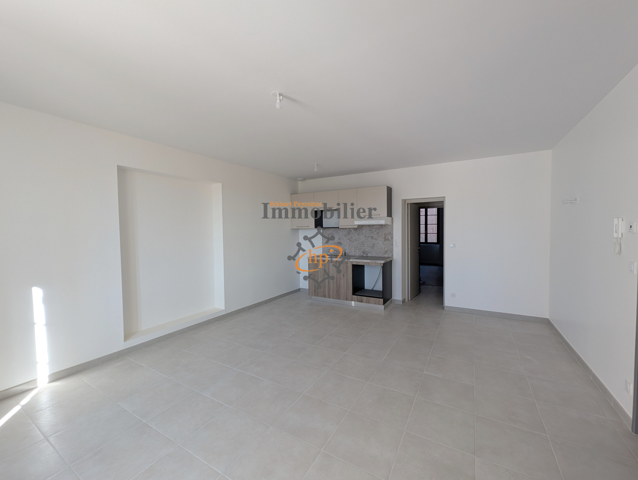 SALMANAC, secteur Vabres l'abbaye, A louer, appartement de type 2 en rez-de-chaussée, de 51m2 habitables, salon/séjour avec coin cuisine semi-équipée et intégrée, chambre avec placard, salle de