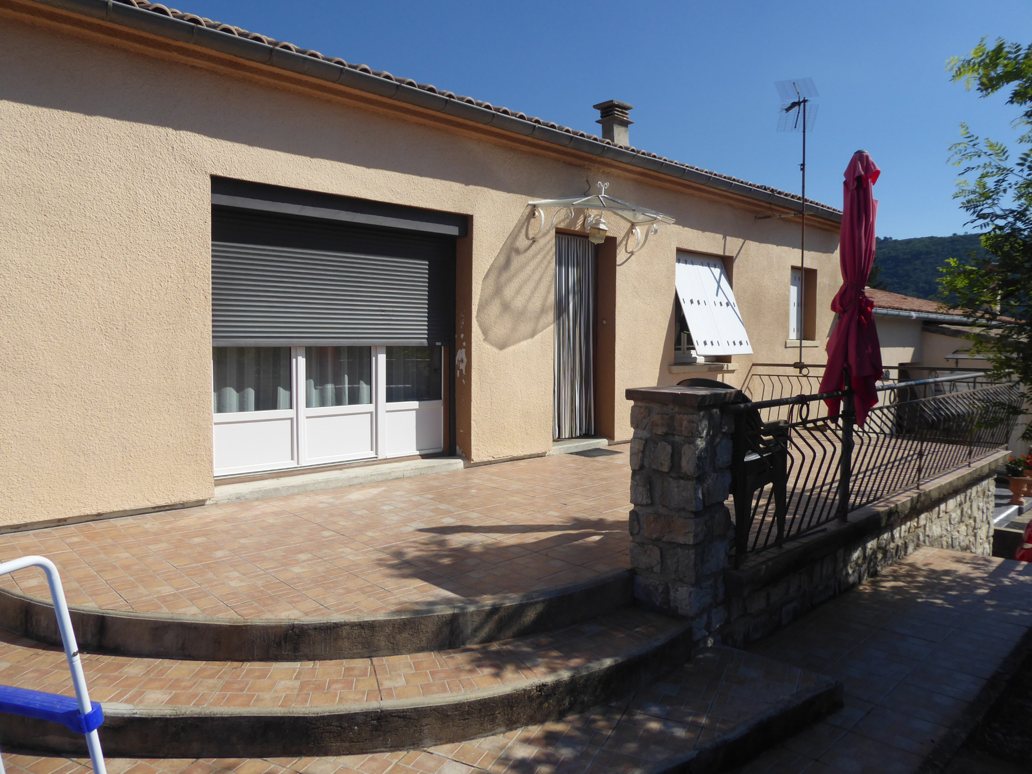 SALMANAC, secteur Vabres l'abbaye, A louer, appartement de type 3 en rez-de-chaussée, de 68m2 habitables, salon/séjour avec coin cuisine semi-équipée et intégrée, deux chambres avec placard, sa