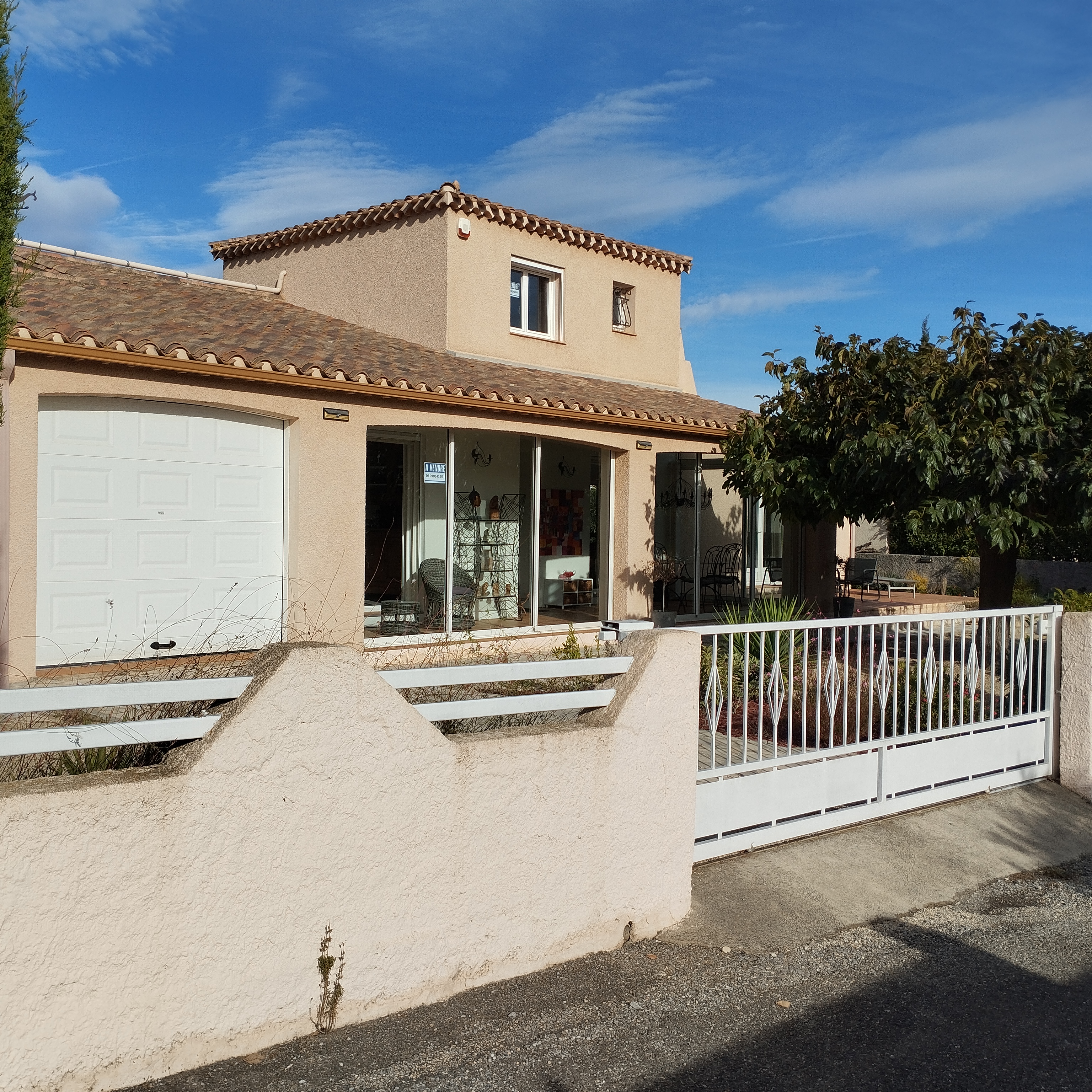 Villa d'architecte séduisante par son caractère unique, au calme, très bien située, quartier résidentiel, secteur Pinède, à moins de 10 minutes à pied du centre ville de Lézignan-Corbières. Prix de vente : 430 000 €. Constructio